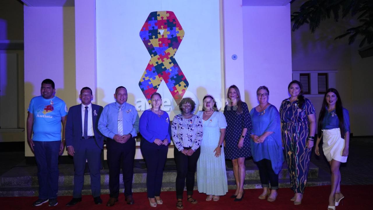 Gobierno di Aruba y Fundacion Autismo Aruba (FAA) diasabra anochi un biaha mas y pa varios aña ta uni na e causa special aki y ta ilumina bestuurskantoor cu luznan blauw. Despues di un ceremonia cortico na unda cu Prome MinisterEvelyn Wever-Croes y Presidente di FAA señora Carolina Thiel-Span a duna un discurso cortico sigui pa presentacionnan di dos hoben cu autismo. Kay Quandus a trece un bunita poesia y Byron Lesire a introduci su mes y su retonan como un mucha cu autism, ambos hobennan talentoso cu autismo.