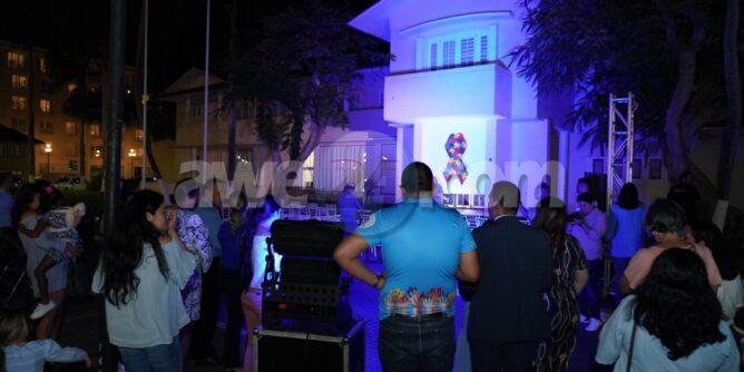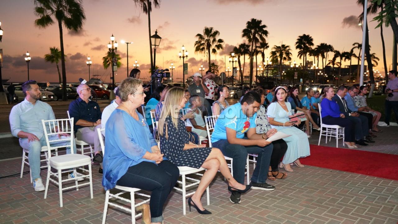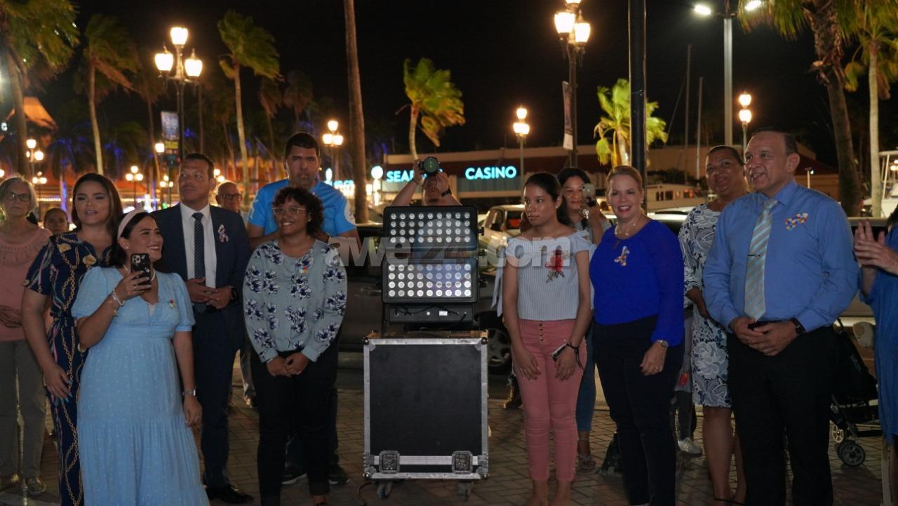 Despues di e ceremonia, Prome Minister, Ministernan Rocco Tjon y Endy Croes, miembronan di FAA y muchanan a ilumina Bestuurskantoor cu luznan blauw. Hunto nan a “Light it up blue.”