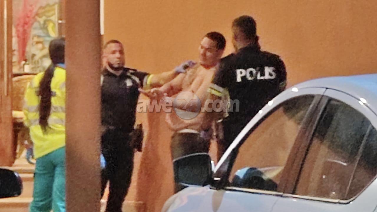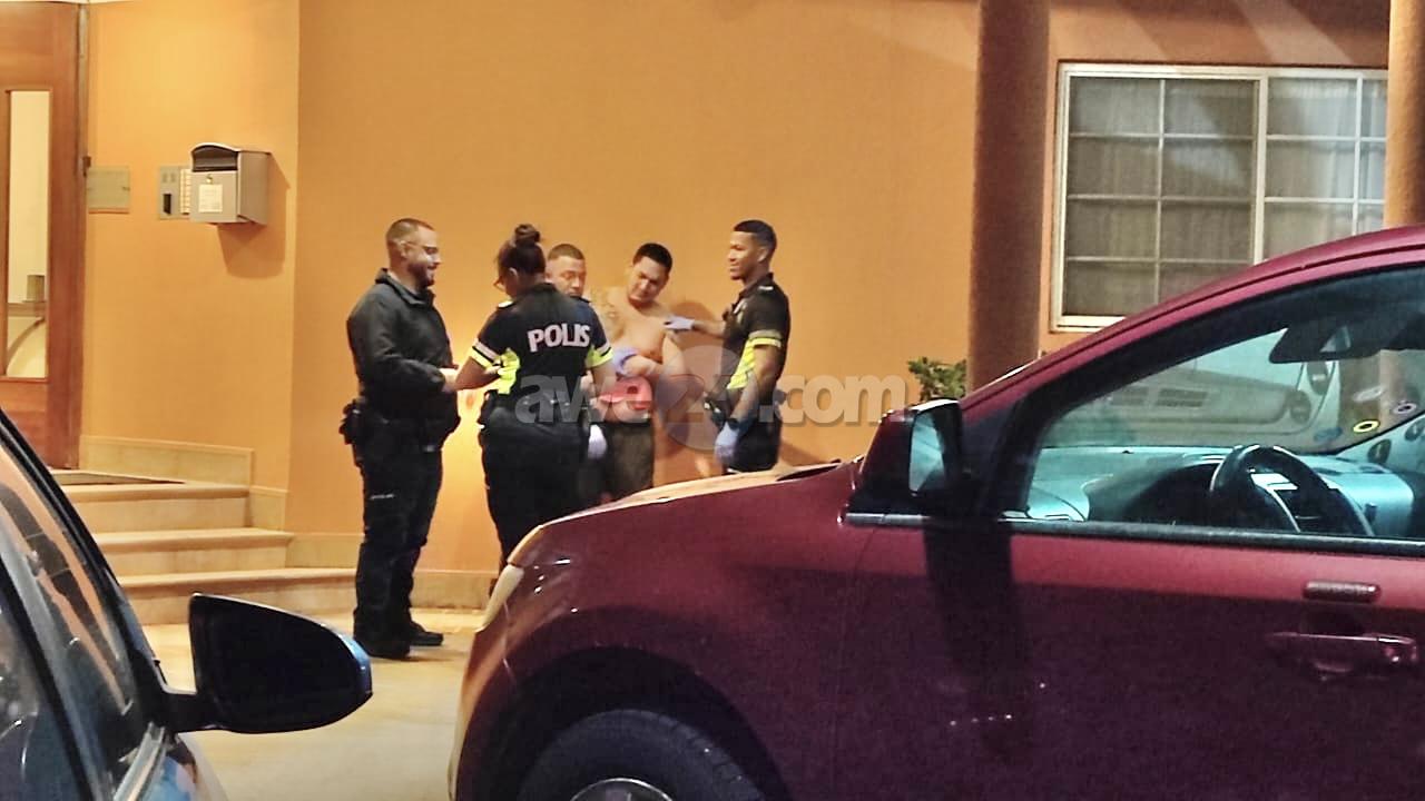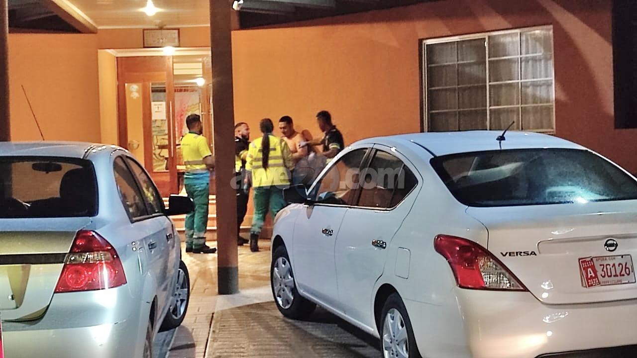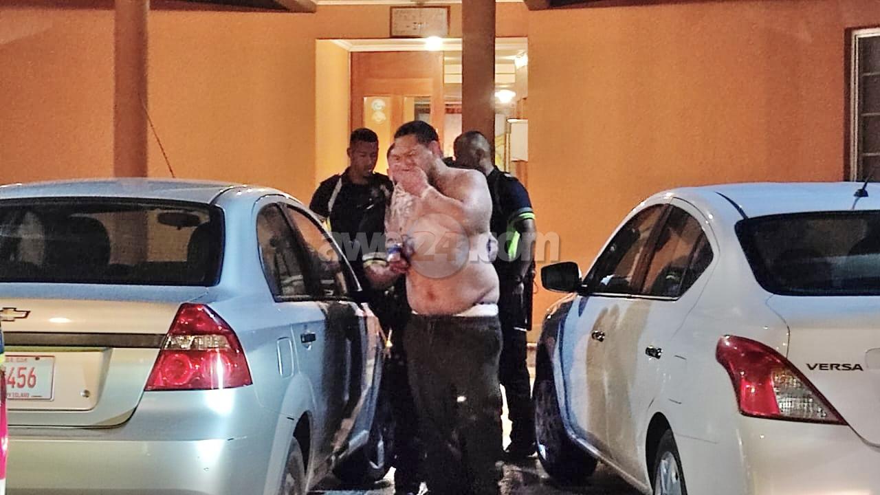 Dialuna madruga a drenta informe di cu tin un homber loco den un camber na King David Suites na Palm Beach, mesora a dirigi patruyanan na e sitio. Na yegada di e patruya a bin topa cu un homber masha inquieto mes den e lugar pero a nota algo lora rond di su man y a nota hopi sanger rond pa cual a pidi presencia di ambulans. Na yegada di e ambulans nan a atende e homber y a haya sa cu e persona ta bao influencia di un of otro substancia y polis drenta e apartamento y a nota cu ela comete masha hopi destruccion pa cual e momentonan ey polis a pidi pa e investigadornan technico y forensyco pa bini y documenta e destruccionnan. Ademas polis a detene mesora pa destruccion y a bay cun’e den e ambulans pa hospital. Despues di e tratamento medico e por a bay den cel na warda di polis.