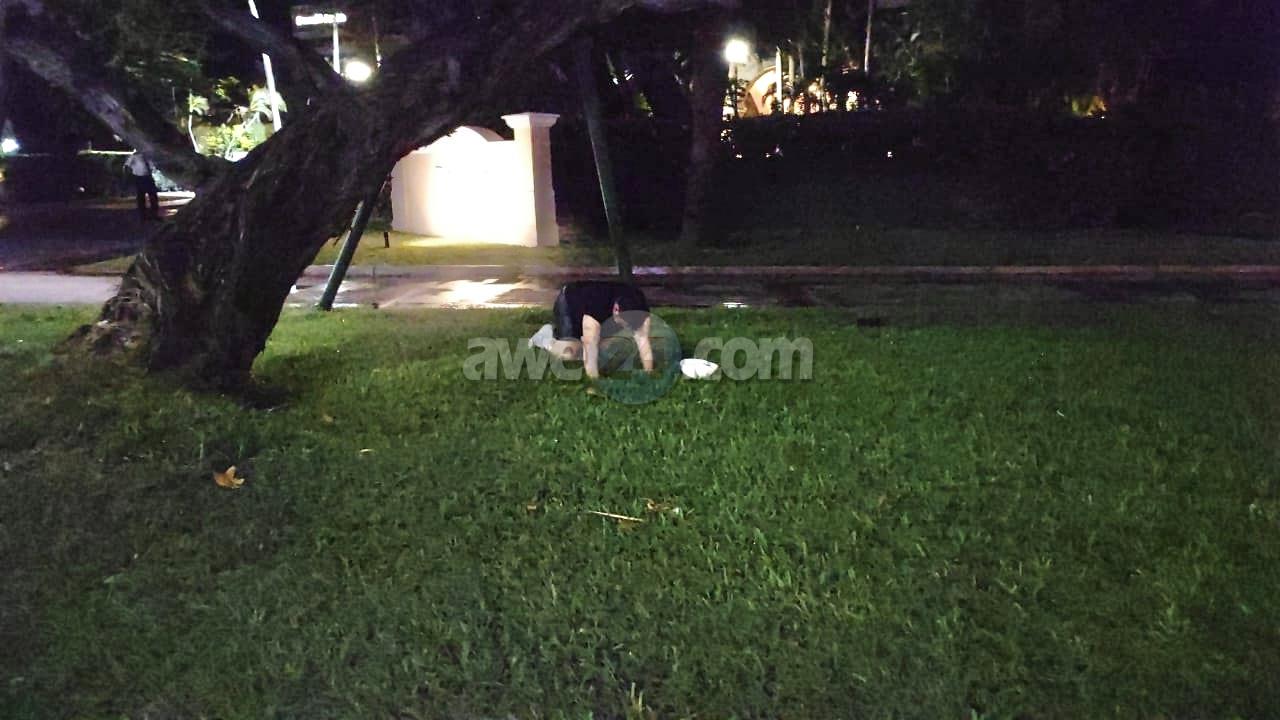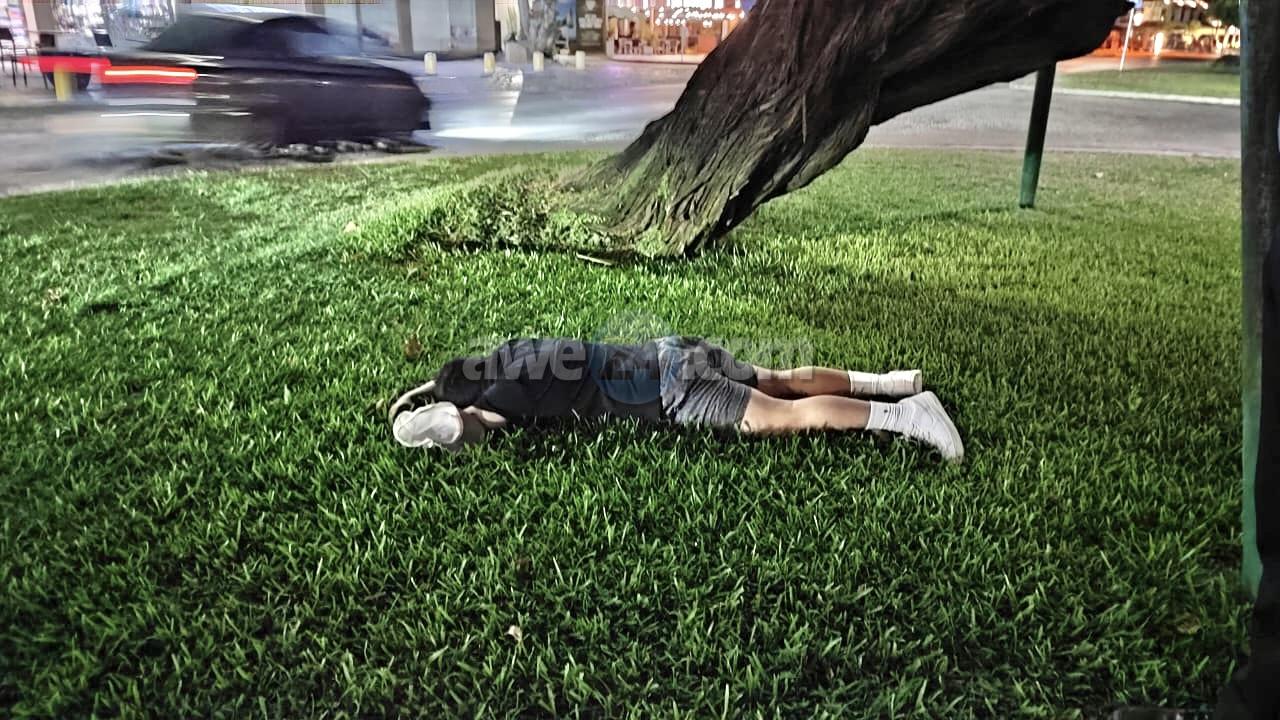 Diamars madruga a drenta informe di cu tin un turista malo benta den e yerbanan dilanti un hotel na Palm beach, mesora a dirigi un patruya na e sitio. Na yegada di e patruya a bin haya e turista benta den e yerbanan dilanti e hotel. Ora cu a lante a nota cu e ta burachi. A busca tur forma pa sa na cual hotel e lo ta hospeda pero no a logra haya sa. E ora ey a opta pa hib’e warda di polis na Sanicolas pa presente dilanti un fiscal auxiliar y pa despues trese bek na warda di Shaba. Den e trajecto di Sanicolas pa Shaba e turista a saca den e vehiculo di transporte lagando esaki tur saca. Polisnan mes mester a spuit e sushedad afo y laba e vehiculo pa asina por bolbe usa e vehiculo pa otro casonan.