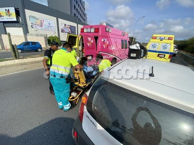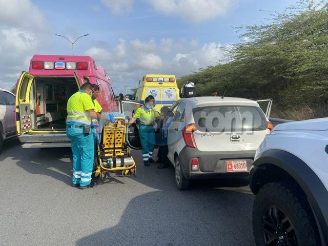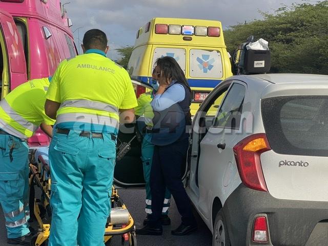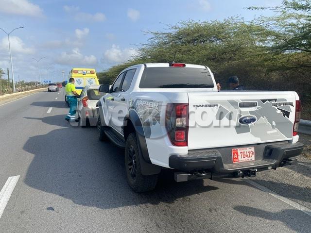 Diaranzon mainta a drenta informe di un accidente cu hende herida riba e “Green Corridor” panort di caminda pariba di Hyatt Place, mesora a dirigi tanto polis como ambulans na e sitio. Na yegada di e patruya a bin compronde cu aki un dama chauffeur di un pick-up no a regula su velocidad ni mantene distancia y a bay dal tras di un KIA Picanto den fila su dilanti. E impacto a pone cu e pasahero di e Picanto a resulta herida. Ambulans a presenta na e sitio y a atende e dama. Mientras cu ambulans tabata atendiendo e pasahero den e ambulans e dama chauffeur di e Picanto tambe tabata keha di dolor di nek. A pidi presencia di otro ambulans pa bin atende cu e dama chauffeur tambe. Ambos a keda transporta pa hospital pa tratamento medico.