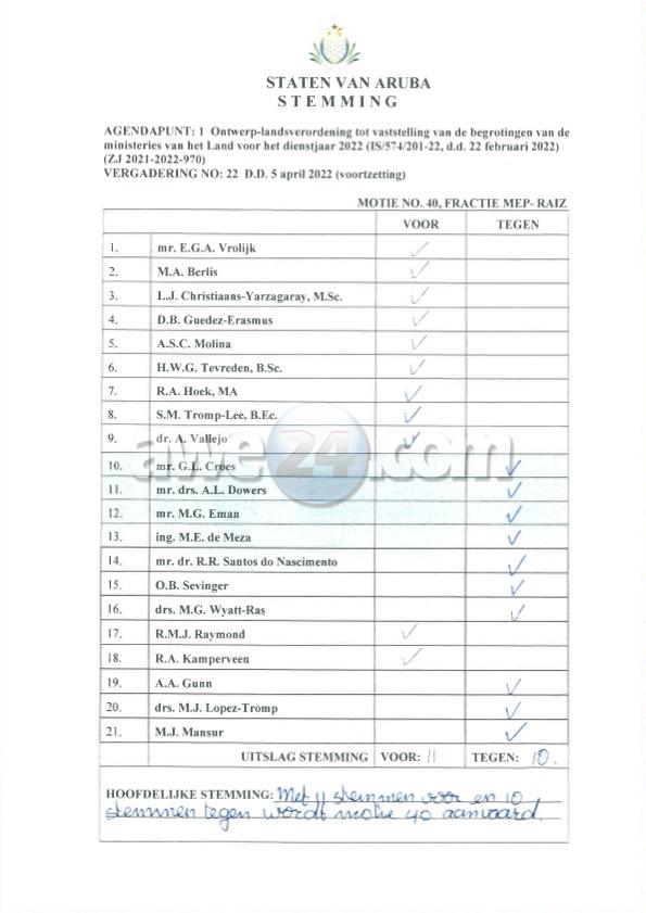 Durante tratamento di presupuesto, Fraccion di MEP, sostenidoor di Parlamentarionan di RAIZ, a presenta un mocion hopiimportante cu e speransa cu esaki lo haya aprobacionunanimente di Parlamento mirando cu ta trata integridad y tambe pasobra e reunion aki a wordo pasa live riba diferentemedionan social y canal 46 di television. Un tema cu a wordomenciona durante henter e tratamento di Presupuesto 2022. Sinembargo, oposicion, dilanti miles di siguidornan di e reunion, a vota contra e mocion aki mustrando cu di berdadnan no ta ‘walk the talk’ manera nan kier pone pueblo kere.