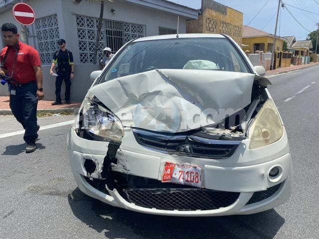 Diabierna mainta a drenta informe di un accidente cu hende herida na e cruzada Jan de Oudestraat cu Bernhardstraat, mesora a dirigi tanto polis como ambulans na e sitio. Na yegada di e patruya a bin compronde cu aki ta trata di un accidente pa falta di preferencia unda e chauffeur di e Ford Figo biniendo for di nort den Jan de Oudestraat no a duna preferencia na e Mitsubishi Colt bayendo pabao y nan a dal den otro. Debi na e fuerte impacto 2 persona a resulta herida. Na yegada di e ambulans nan a atende e victimanan.