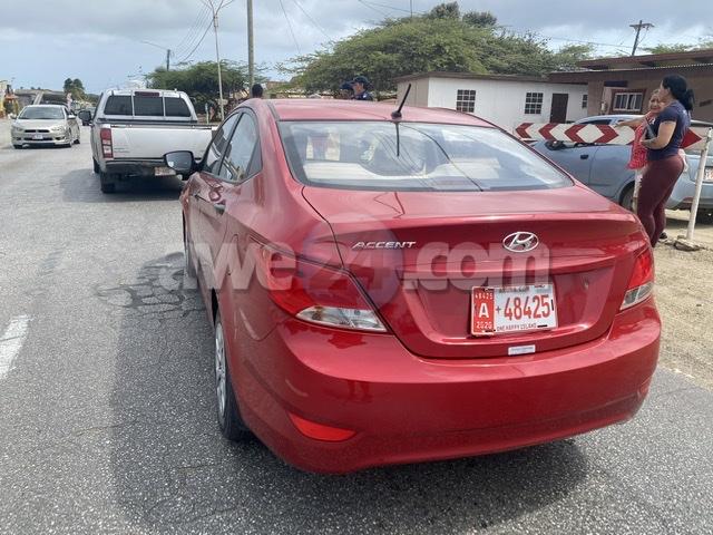 Diasabra atardi a drenta informe di un accidente na e cruzada pabao di warda di polis na Santa Cruz, mesora a dirigi un patruya na e sitio. Na yegada di e patruya a bin compronde cu aki ta trata di un accidente unda cu e dama chauffeur di e Hyundai Accent no a regula su velocidad ni a mantene distancia a bay dal tras di e pick-up di e Cuerpo Especial Arubano. Afortunadamente ningun hende a resulta herida.