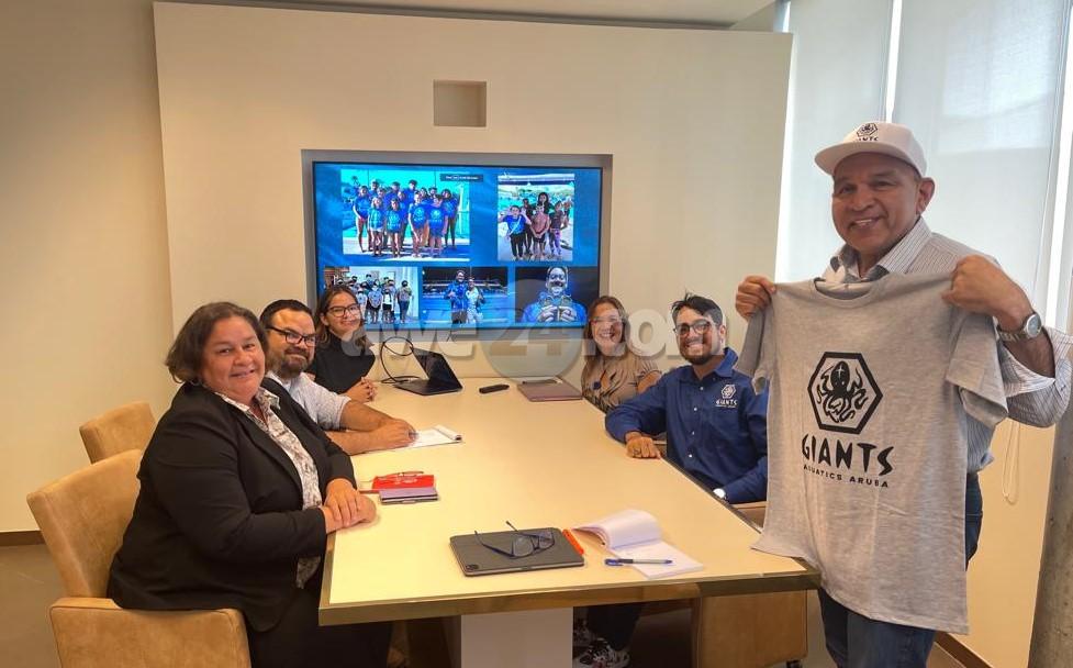 ORANJESTAD: Diasabra ultimo den un encuentro ameno Minister Endy Croes a reuni cu Presidente di Giants Aquatics Aruba, sra. Zuleika Fernandes Perna-Silva, Vice Presidente sr. Richard Flanegin, Tesorero, sra. Roraima Arends, Secretaria, sra. Kim Kelders y Jordy Groters, miembro fundado.
