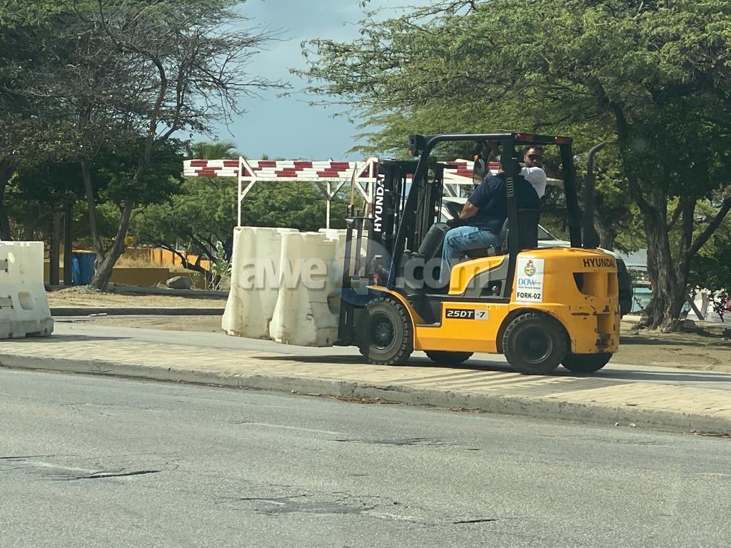Mirando ya caba campamento a cuminsa y na e Linear Park tambe tin hende ta campa, D.O.W. a cuminsa pone baricadanan pa asina evita pa e autonan bay para auto riba e pasada di e Linear Park.
