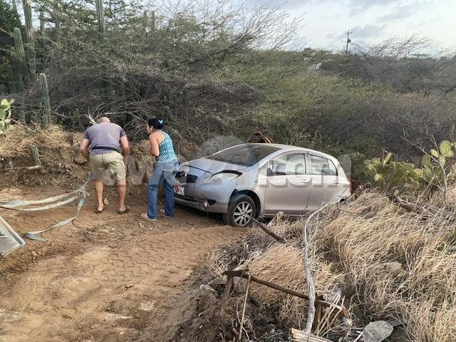 Diahuebs atardi a drenta informe di un accidente na e dam di Warawara, mesora a dirigi un patruya na e sitio. Na yegada di e patruya a bin compronde cu aki ta trata di un Toyoyta Vitz maneha pa un dama y na e y-splitsing a slip y a bay termina den e dam. Afortunadamente ningun hende a resulta herida.