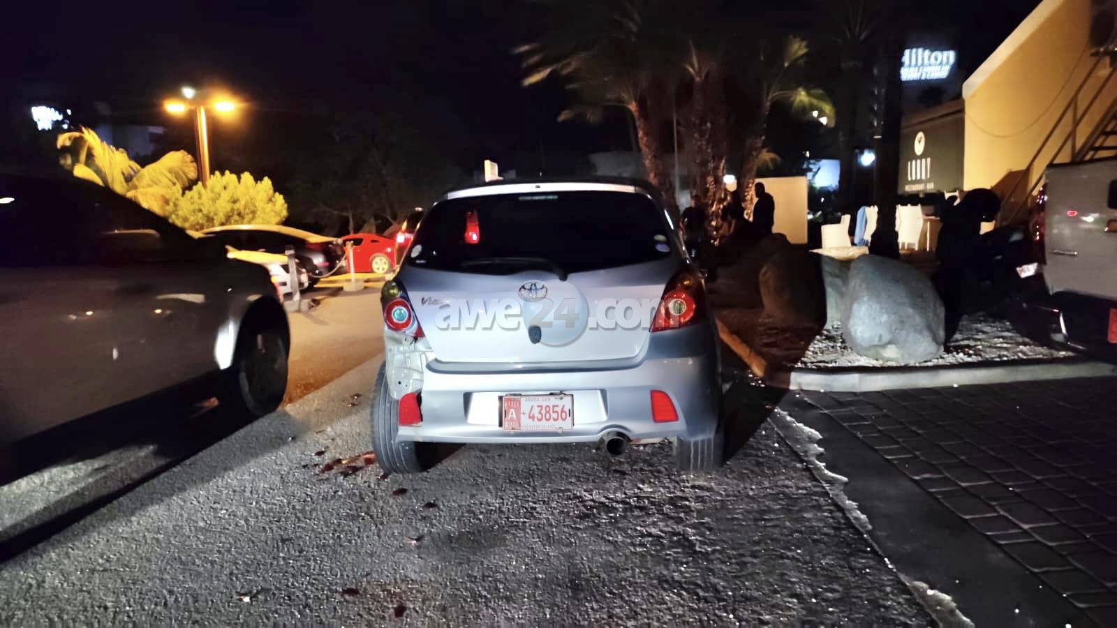 Diabierna madruga a drenta informe di un accidente hit & run na e hotzone banda di e highrise hotelnan na Palm Beach, mesora a dirigi un patruya na e sitio. Na yegada di e patruya a bin compornde cu aki ta trata di un accidente unda un auto a hit and run lagando un Toyota Vitz cu basta danjo y unda esaki a bay dal den un auto cora y consecutivamente e auto cora aki a bay dal den un pick up e daño aki si tabata considerable mirando pero cu 3 auto cu basta sla.