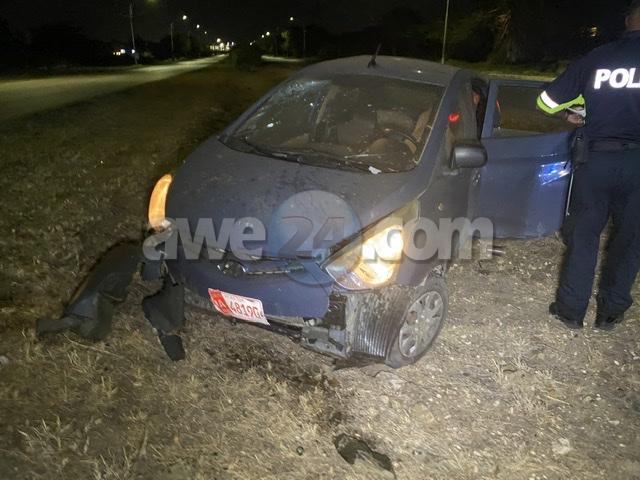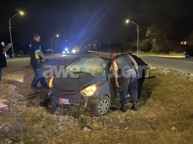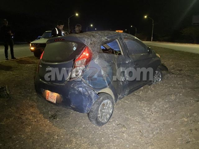 Diadomingo madruga a drenta informe di un accidente cu hende herida riba Sasakiweg, mesora a dirigi tanto polis como ambulans na e sitio. Na yegada di e patruya a bin compronde cu aki ta trata di un accidente unda cu e chauffeur di e Hyundai Eon bayendo nort a perde control baha den e greppel bolter y bay cay bek riba su wielnan. Door di e impacto e chauffeur a haya un kap na su cabes y tabata sangrando profusamente. Na yegada di e ambulans nan a atende e chauffeur y a transporte pa hospital.