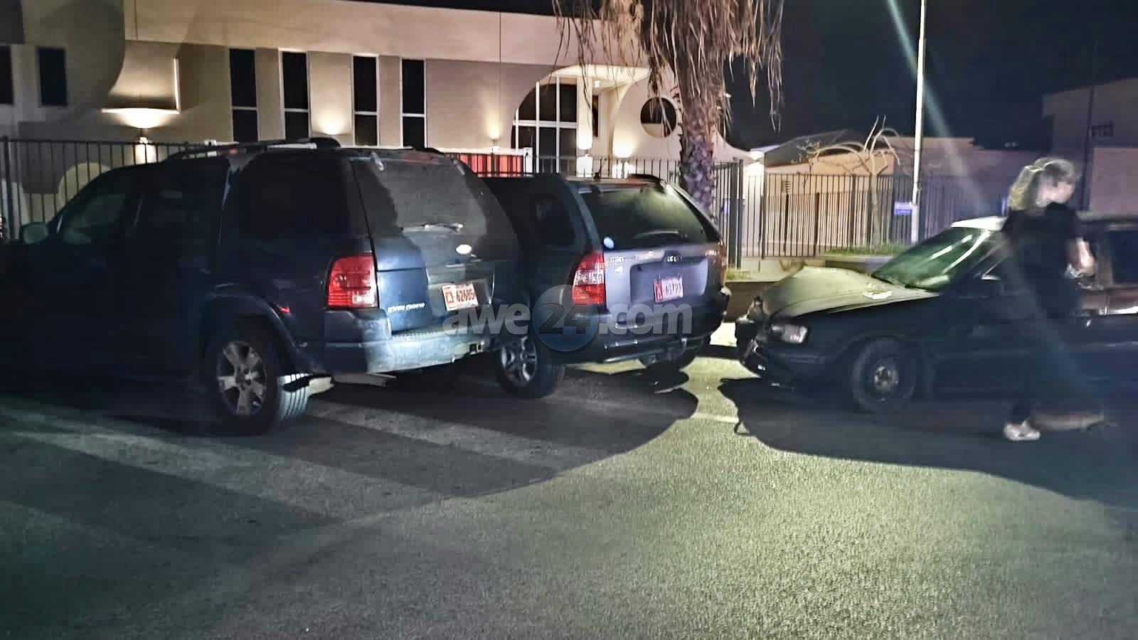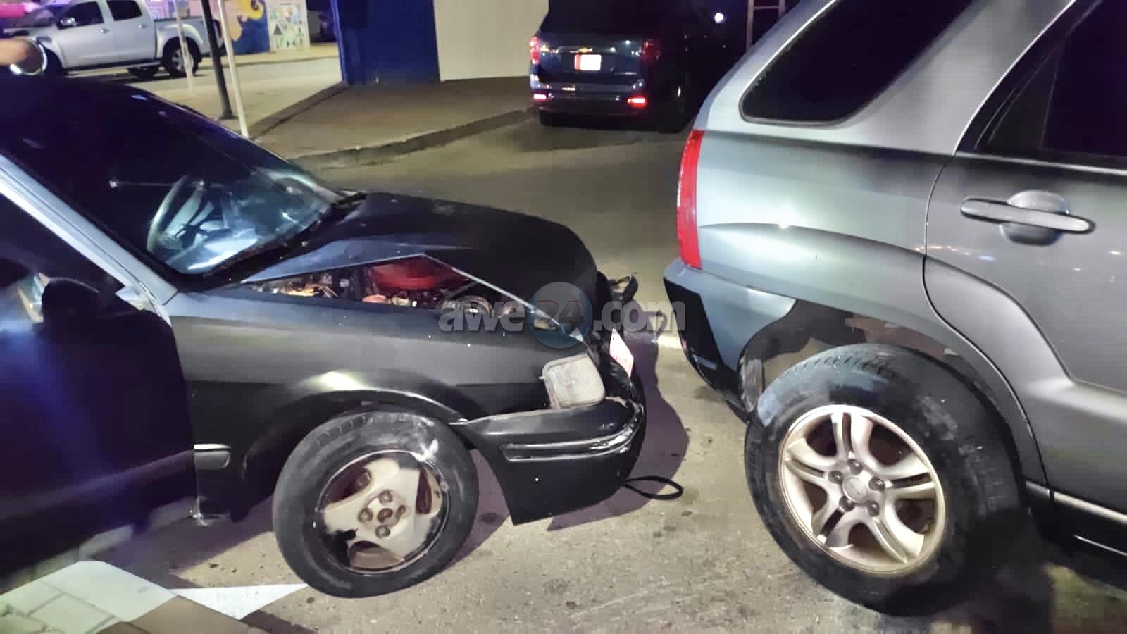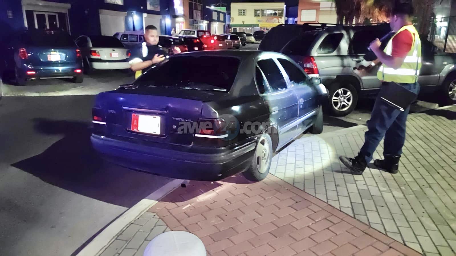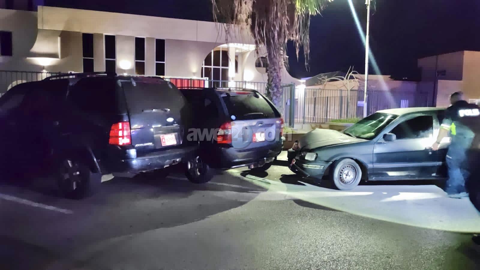 Diaranson anochi a drenta informe di cu tin un auto mal staciona pabao di Kini Kini Building, mesora a dirigi un patruya na e sitio. Na yegada di e patruya a bin topa cu un Toyota Tercel mal staciona sin chauffeur aden, net ora ta bay pidi pa takelwagen e doño a presenta y a bay hala e auto. Moviendo e auto ela bira e birada mucho grandi y a bay dal un vehiculo s.u.v. y a pusha esaki bay dal un otro s.u.v. Ora polis a bay atende cu e chauffeur a nota cu e ta bao influencia y a detene pa core auto bao influencia causa un accidente. Afortunadamente ningun hende a resulta herida.