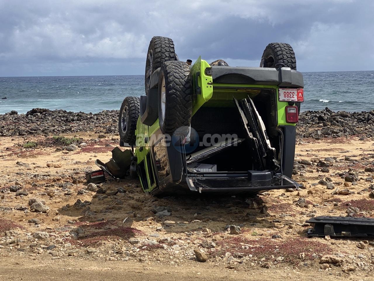 Diasabra mainta a drenta informe di un accidente cu hende herida na Cudarebe, mesora a dirigi tanto polis como ambulans na e sitio. Na yegada di e patruya a bin compronde cu aki ta trata di un Jeep di un compania di huur cu 5 turista hulandes a bolter debi na mal maniobra di e chauffeur. Mirando e cantidad di 5 herido a pidi extra ambulans na e sitio. Na yegada di e prome ambulans nan a cuminsa atende cu e victimanan mientras e otronan tabata na caminda. E rapid responder tambe a ser dirigi na e sitio en total 3 ambulans a presenta y entre nan a atende tur e heridonan y a transporta nan pa hospital.