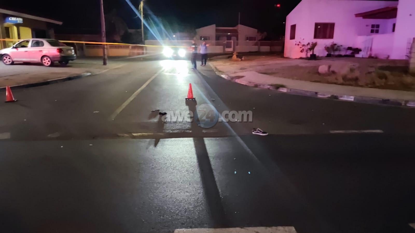 Dialuna anochi a drenta informe di un accidente cu hende herida na Solito, mesora a dirigi tanto polis como ambulans na e sitio. Na yegada di e patruya a nota cu aki ta trata di un hoben cu a bay cruza caminda diripiente y no a paga tino cu un minivan tabata bini di nort y como e chauffeur di e minivan no por a haci nada mas a dal e victima. Polis a nota cu e victima tabata sangra pa nanishi y orea y su pulso tabata hopi abao. Na yegada di e ambulans ya no por a haci nada mas pa e victima. Mesora a pidi presencia di autoridadnan competente y un dokter. Na yegada di e dokter a constata cu e victima a fayece y a constata morto. Polis a confisca e vehiculo pa mas investigacion. Nos di awe24.com ta extende nos mas sincero palabranan di condolencia na famia di e fayecido.