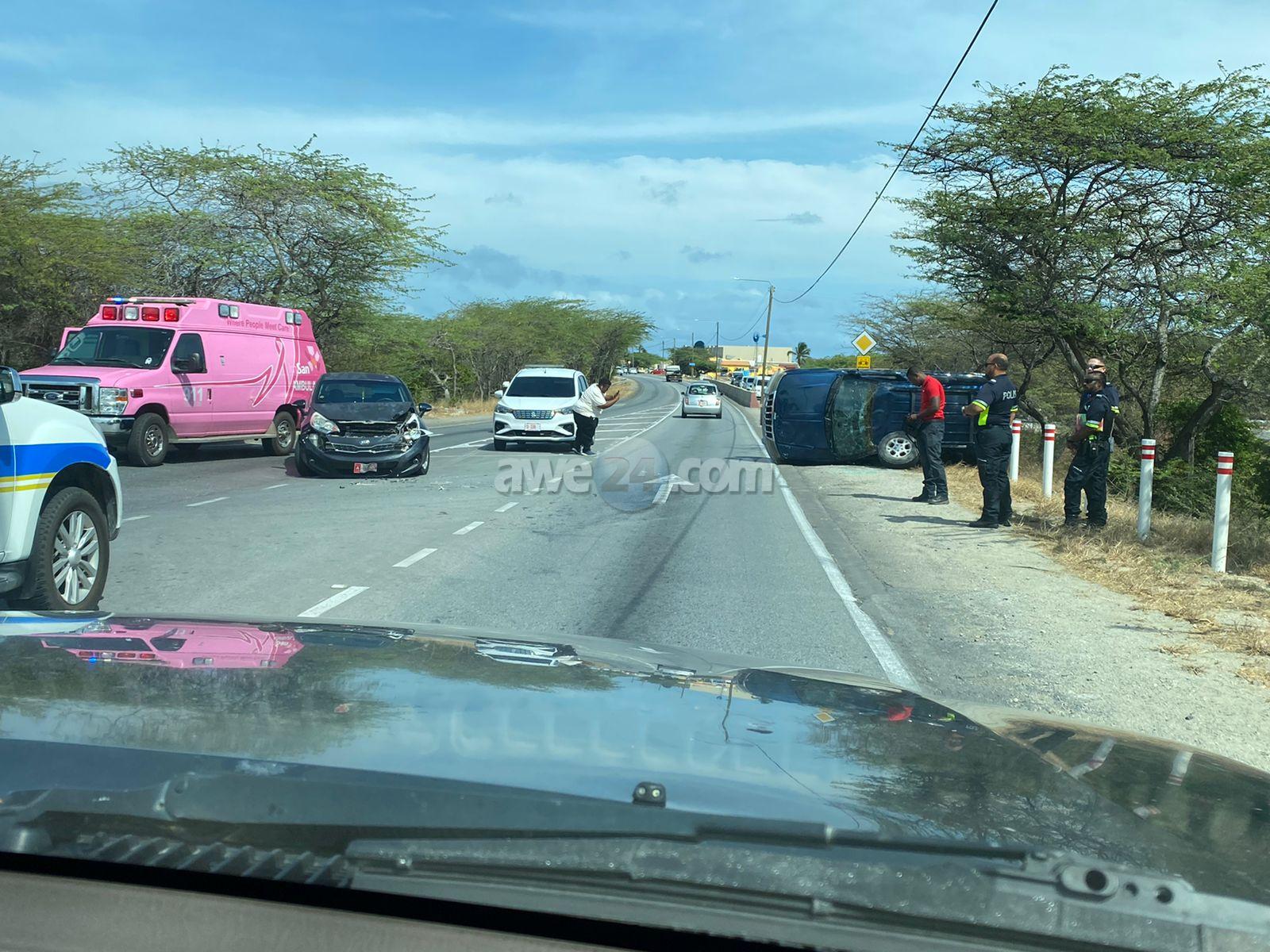Diamars atardi a drenta informe di un accidente cu hende herida pabao di La Granja na Savaneta, mesora a dirigi tanto polis como ambulans na e sitio. Na yegada di e patruya a topa cu trafico hopi stagna, a bin resulta cu aki ta trata di un accidente unda cu un Kia Rio a bal dal un Jeep y a bolter esaki. Debi na e impacto e chauffeur di e Jeep a resulta herida. Na yegada di e ambulans nan a atende e victima y a transporte pa Centro Medico.