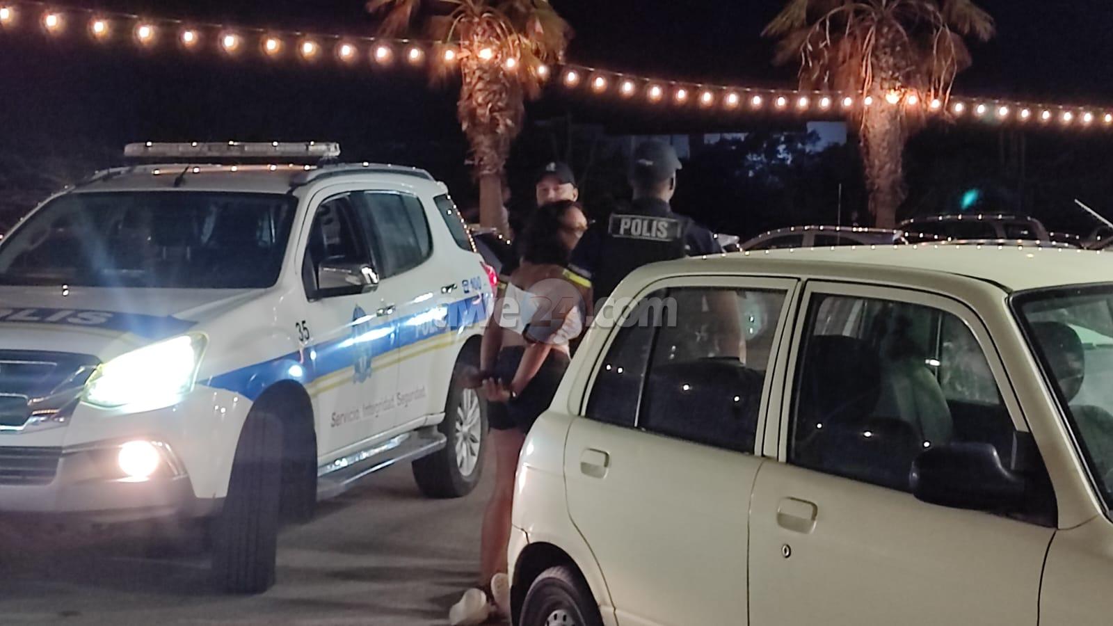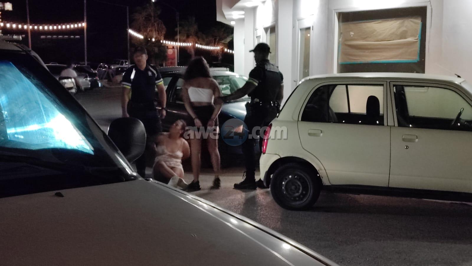 Diahuebs madruga banda di un club nocturno na Palm Beach polis a wak 2 dama ta discuti cu otro den vos halto y a bay atende cu nan prome cu nan pleita y of bringa. Ora polis a bay atende cu nan ambos a cuminsa insulta polis. Polis a purba tur manera pa nan stop pero e insultonan a sigui bay den direccion di e polisnan y no a keda nada otro cu detene ambos.