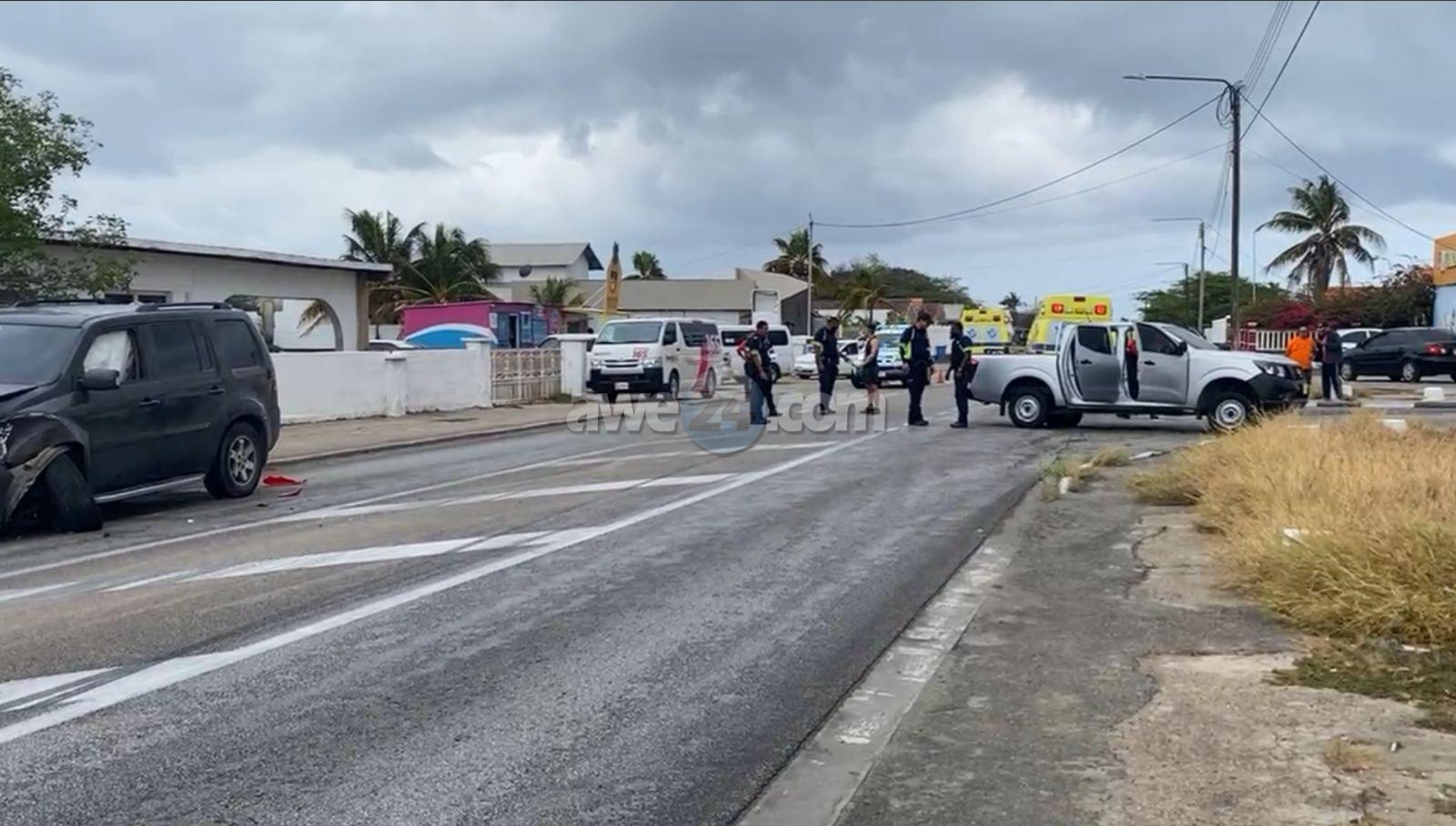 Diahuebs merdia a drenta informe di un accidente cu hende herida na Santa Helenastraat, mesora a dirigi tanto polis como tambe ambulans na e sitio. Na yegada di e patruya a bin compronde cu aki ta trata di un accidente unda cu un pick-up bayendo pabao a slip riba e caminda muha, perde control y a bay di banda dal riba un Honda Pilot di direccion contrario. E impacto tabata fuerte y 2 persona den e pick-up a resulta herida. na yegada di e 2 ambulansnan nan a atende e victimanan.