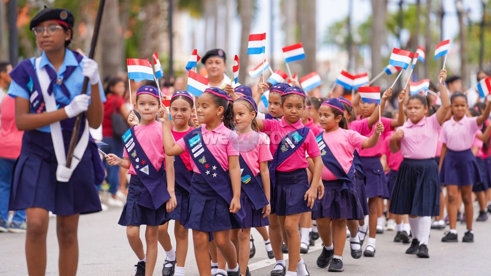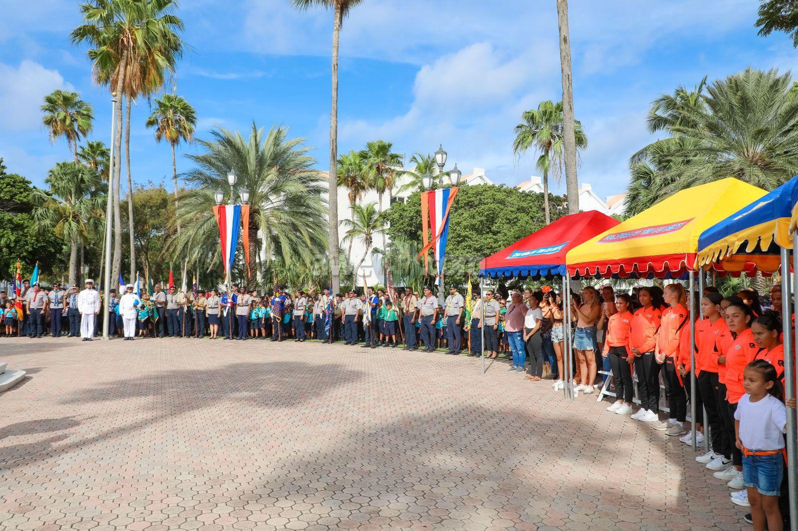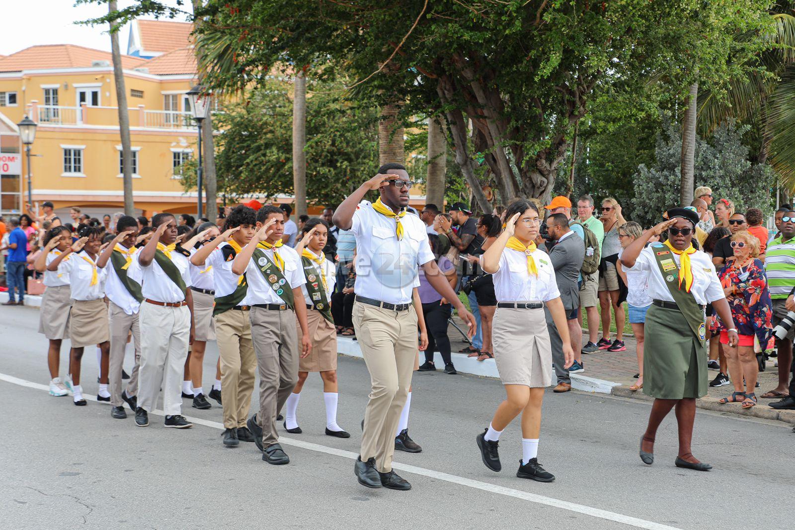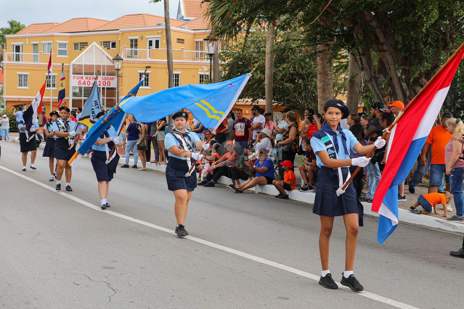 Na final di e ceremonia oficial a sigui cu e desfile riba e caminda dilanti Parke Wilhelmina di gruponan scout di Aruba cu mas di 700 participante.