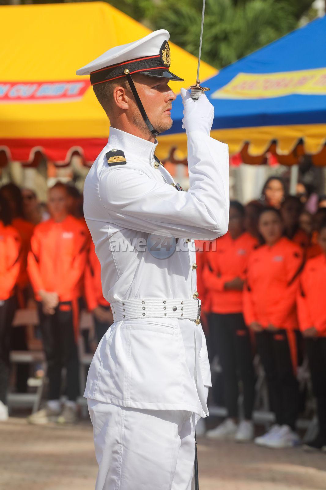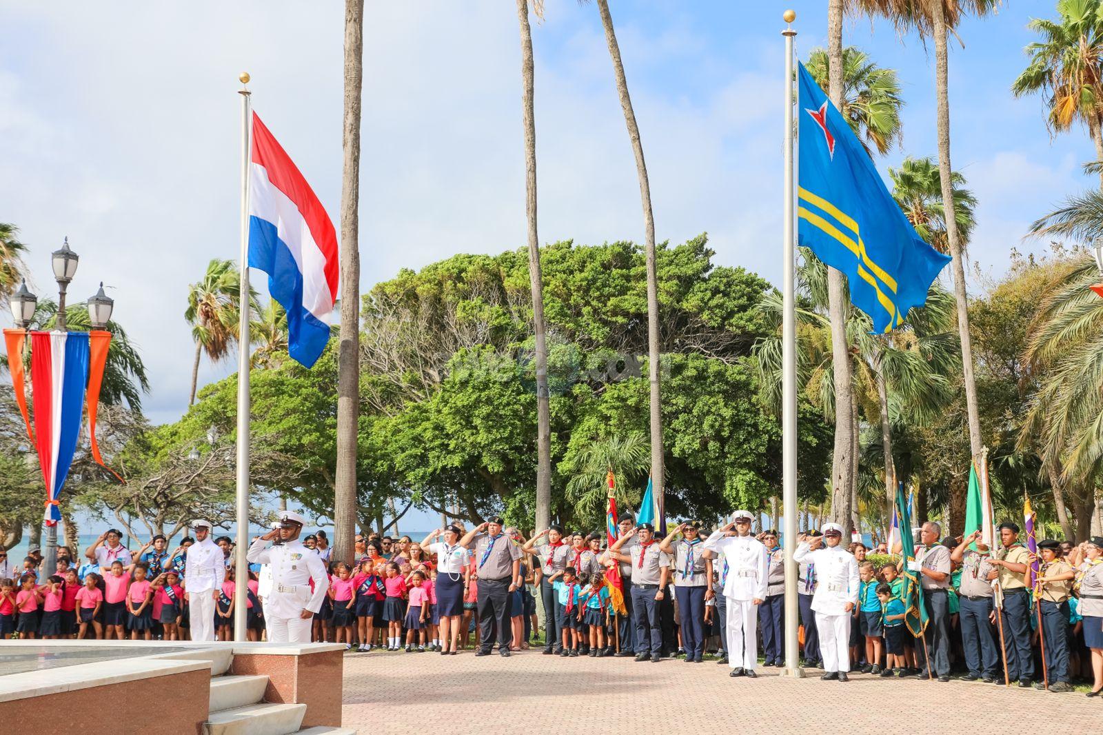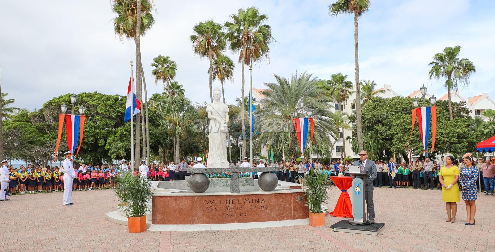 Despues cu Gobernador a inspecciona e Cuerpo di Marina Realy saluda e guardia di honor di gruponan hubenil uniforma, su excelencia a duna permiso pa inicia e ceremonia di acto protocolar cu presentacion di Himno di Hulanda, sigui pa Himno di Aruba cualnan a wordo acompaña musicalmente pa Cuerpo di Marina Real. A conta cu presencia tambe di demas mandatarionan, parlamentarionan, Comision Copa Hubenil Felipe B. Tromp, Oranjevereniging, Cuerpo Consular y demas invitadonan. Presidente di Parlamento mr. Edgard Vrolijk a hiba palabra y a expresa felicitacion na Su Mahestad den nomber di comunidad Arubano. A sigui cu e discurso di Su Excelencia Gobernador di Aruba Sr. Juan Alfonso Boekhoudt.