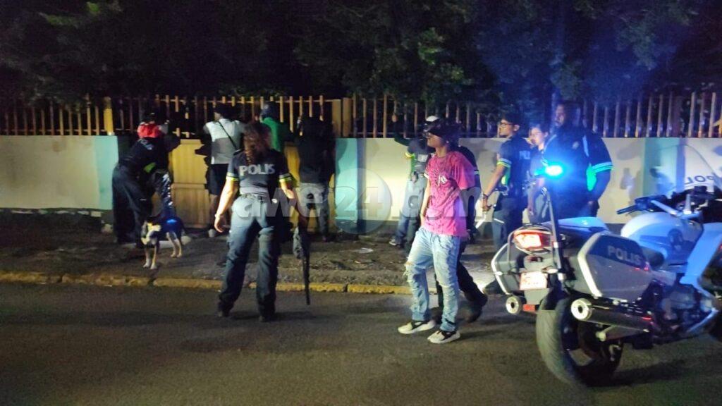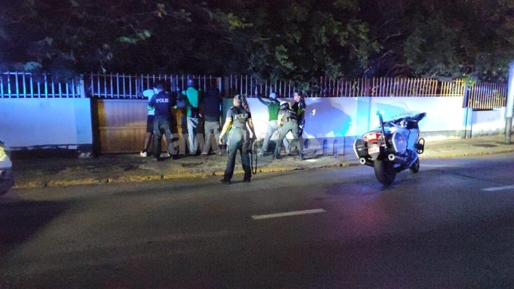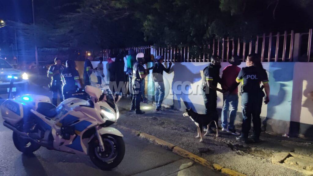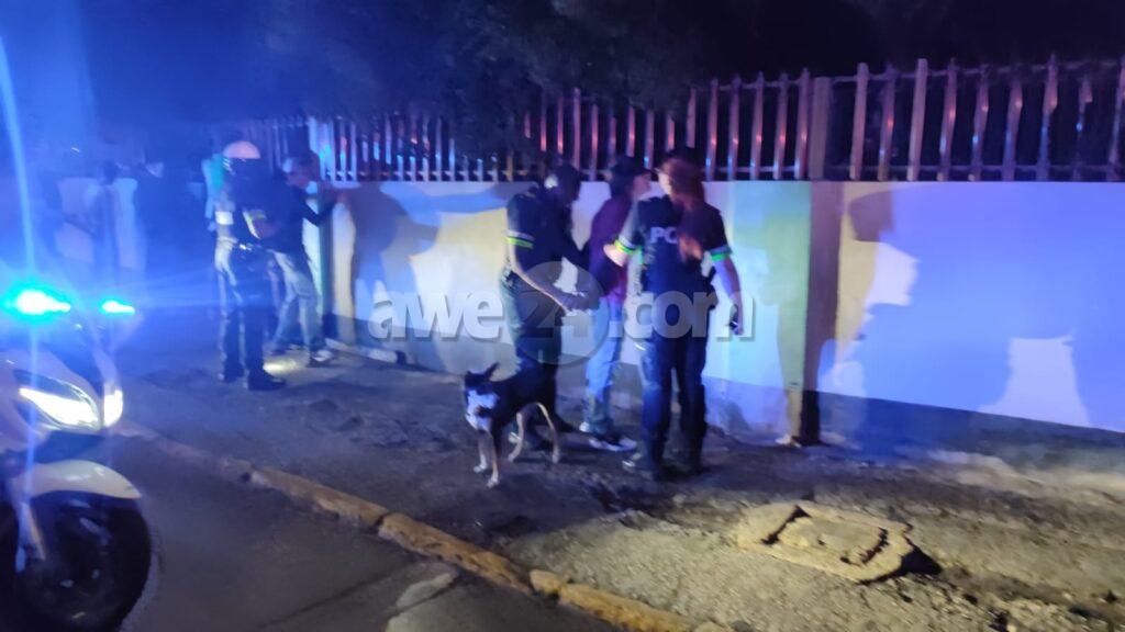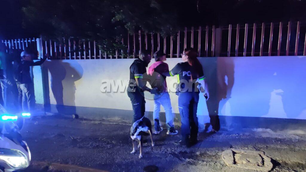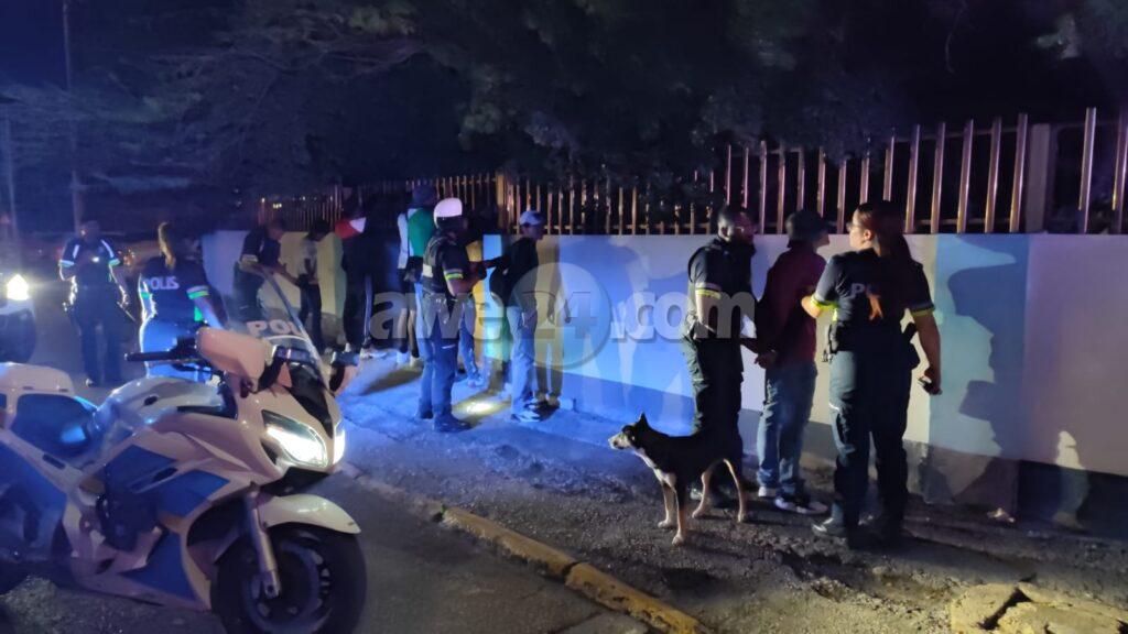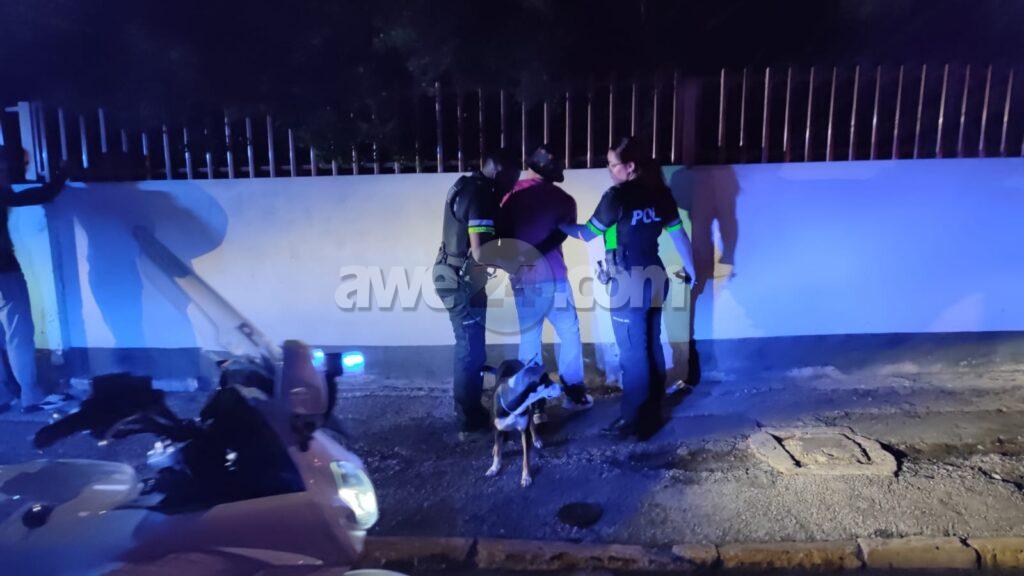Diasabra anochi a drenta informe di cu tin un grupo di hoben canando den Wilhelmina Park den forma sospechoso mesora a dirigi patruyanan na e sitio. Ora e hobennan aki a nota cu polis ta bay pa nan, nan a purba core bay pero asina mes polis a logra para nan pariba di Willem III toren. Polis a listranan y a bin haya nan cu 2 cuchiu y tambe atributonan pa usa y distribui droga. Polis a detene e sospechoso eynan mes y a bay cun’e na warda di polis. Un rato despues polis a logra haya un tas cu cuchiu y atributonan di droga. Polis a confisca esakinan tambe.