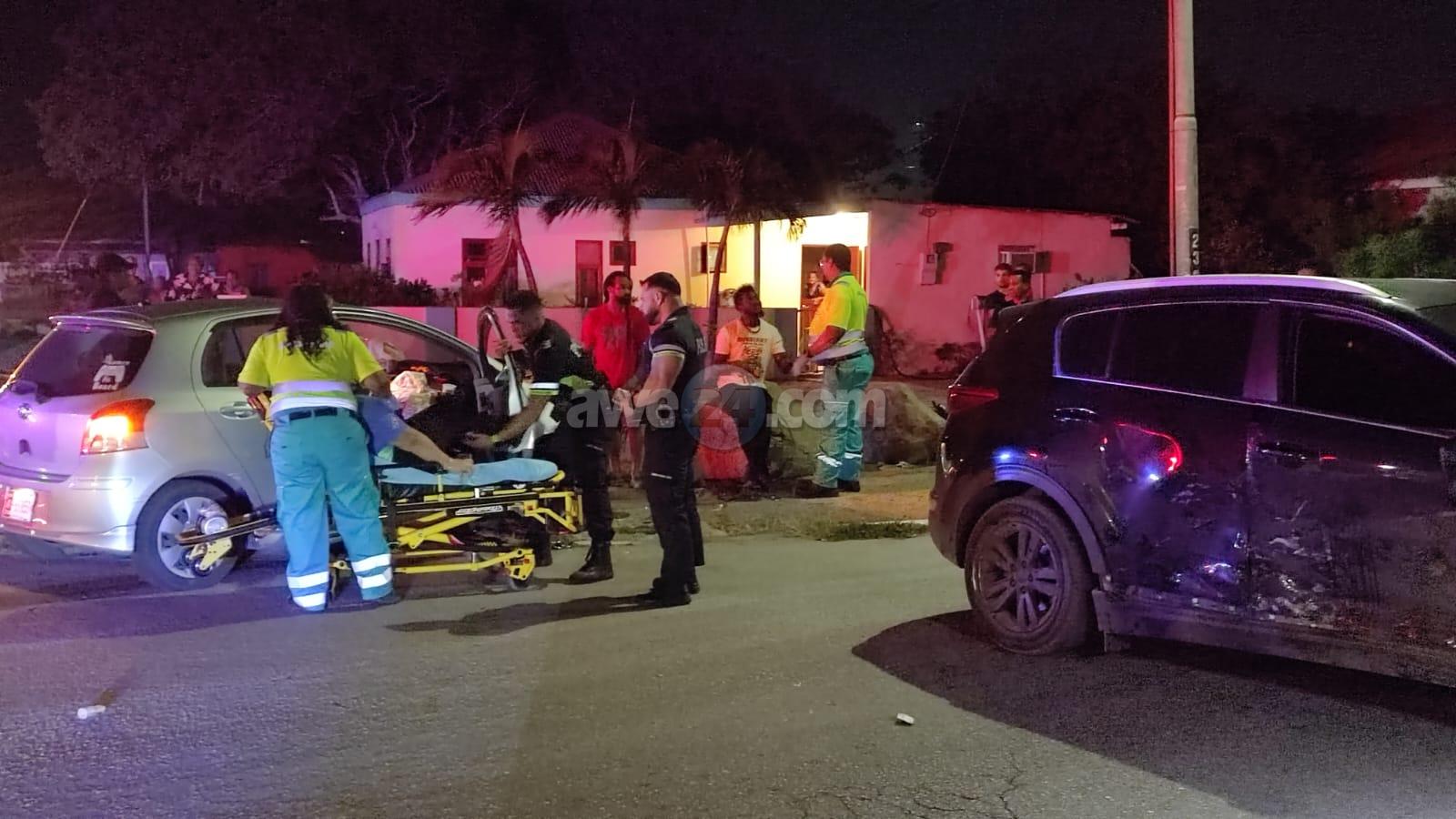Diasabra anochi a drenta informe di un accidente cu hende herida na e cruzada Weststraat/Prof. Lorentzstraat, mesora a dirigi tanto polis como ambulans na e sitio. Na yegada di e patruya a bin compronde cu aki ta trata di un accidente unda cu e chauffeur di e Kia Sportage no a duna preferencia y a bay dal un Toyota Vitz maneha pa un dama na estado cual a resulta herida. Inmediatamente despues di e impacto e chauffeur di e Sportage a bandona e sitio lagando e pasahero cu tabata cun’e herida cu dolor na pecho y ribchi. Na yegada di e 2 ambulansnan nan a atende ambos victima y a transporta nan pa hospital.
