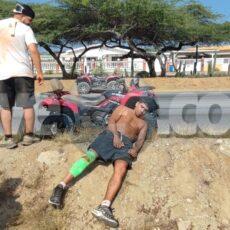 Dialuna madruga a drenta informe di un accidente cu hende herida na Catiri, mesora a dirigi tanto polis como ambulans na e sitio. Na yegada di e patruya a bin compronde cu aki ta trata di un accidente unda cu e dama chauffeur di e Kia Rio shinishi bayendo nort a baha caminda na man drechi perde control dal riba palo di sosten y despues bay dal riba cura di cas. Hasta ora ela dal riba e cura di cas a spart bloki te riba e bentana y veranda. Debi na e fuerte impacto e dama a resulta herida. Na yegada di e ambulans nan a atende e dama y a transporte pa hospital pa ricibi atencion medico mas avansa.