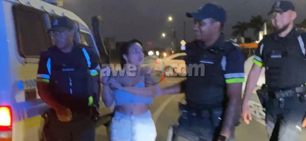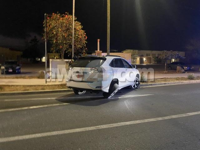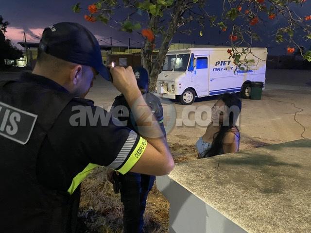 Dialuna madruga a drenta informe di un accidente na e rotonde di Boegoeroei, mesora a dirigi un patruya na e sitio. Na yegada di e patruya a bin topa cu e Lexus RX330 na werki y e dama chauffeur asina burachi cu casi e no por a para riba su pianan. Polis mesora a pone e dama supla pero e dama tabata asina burachi cu ni supla e por a supla. Polis mesora a detene e dama aki cu a core auto bao influencia y causa un accidente unda e auto a keda practicamente “total loss”. NO a keda ningun wiel henter. Takelwagen a presenta pa asina kita e auto for di riba caminda.