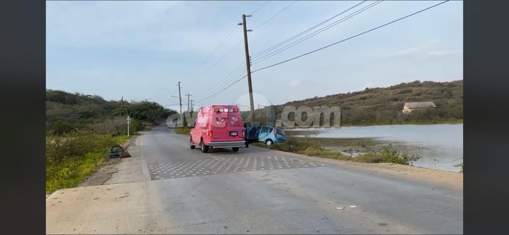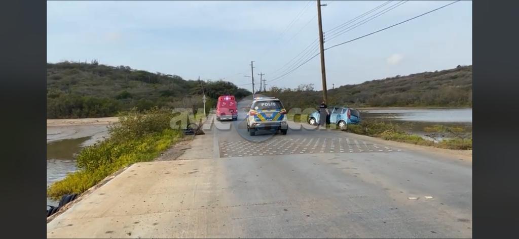 Dialuna mainta a drenta informe di un accidente cu hende herida na Rooi Taki, mesora a dirigi tanto polis como ambulans na e sitio. Na yegada di e patruya a bin compronde cu aki ta trata di un accidente unda cu e chauffeur di e Mitsubishi Colt A77981 biniendo for di Barcadera bayendo zuid a perde control na e birada di Rooi Taki y a baha caminda bay dal riba un palo di lus cu alto voltahe y kibra esaki lagando e ta colga. Cu e brisa fuerte e palo di lus tabata zoya bay bin creando e impresion di cu un rato pa otro e lo por a cay. Debi na e fuerte impacto e chauffeur a resulta herida. Na yegada di e ambulans nan a core saca e victima y hala for di e palo di lus pa evita esaki cay riba nan. Ambulans a atende e victima y a transporte pa hospital.