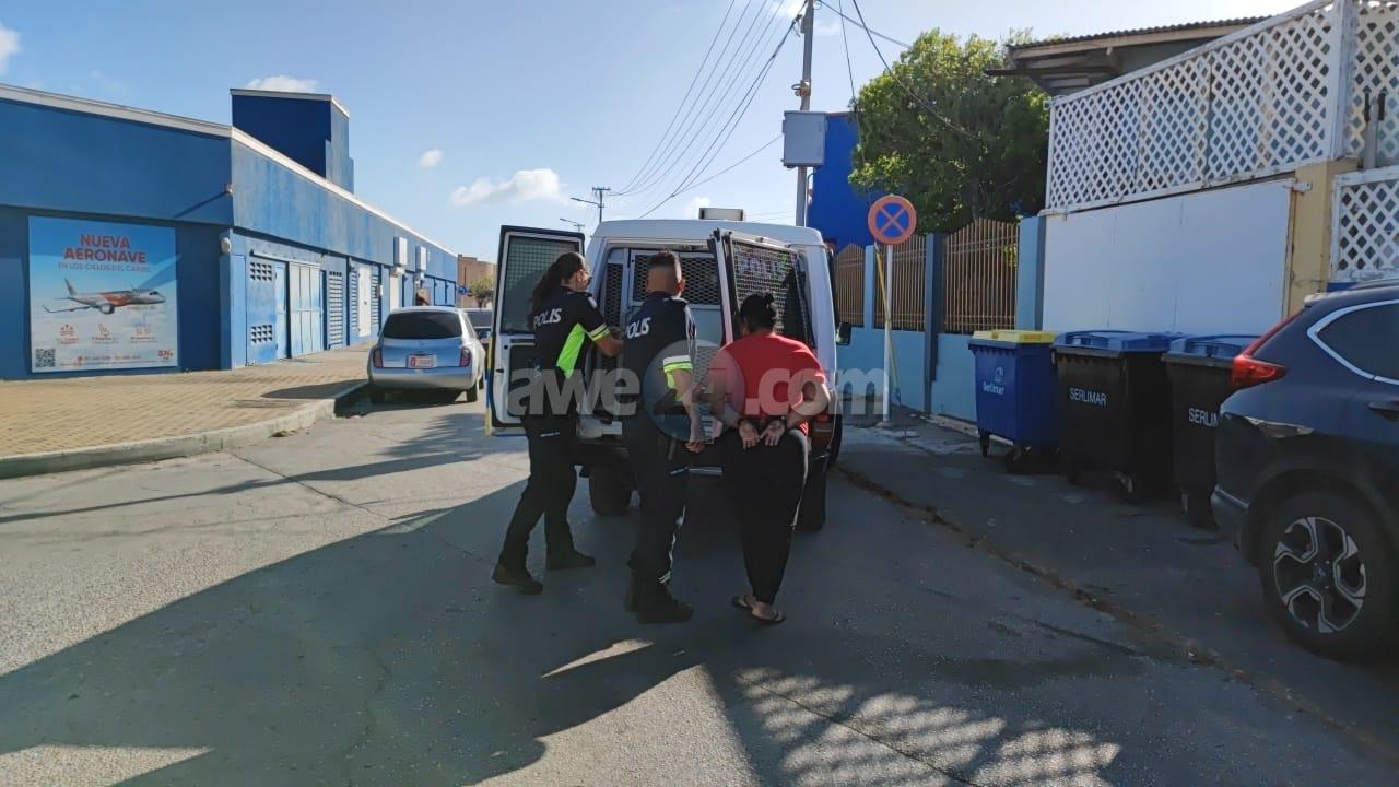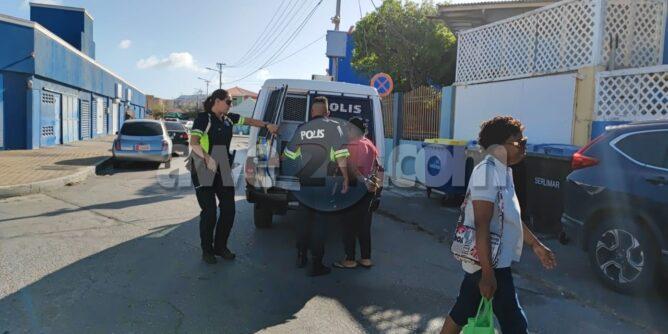 Diamars atardi a drenta informe di un bringamento na Kerkstraat, mesora a dirigi patruyanan na e sitio. Na yegada di e patruya ya no tabata tin bringamento mas pero e dama cu tabata busca problema si tabata den cercania, mesora polis a detene e dama aki y a bay warda di polis cun’e.
