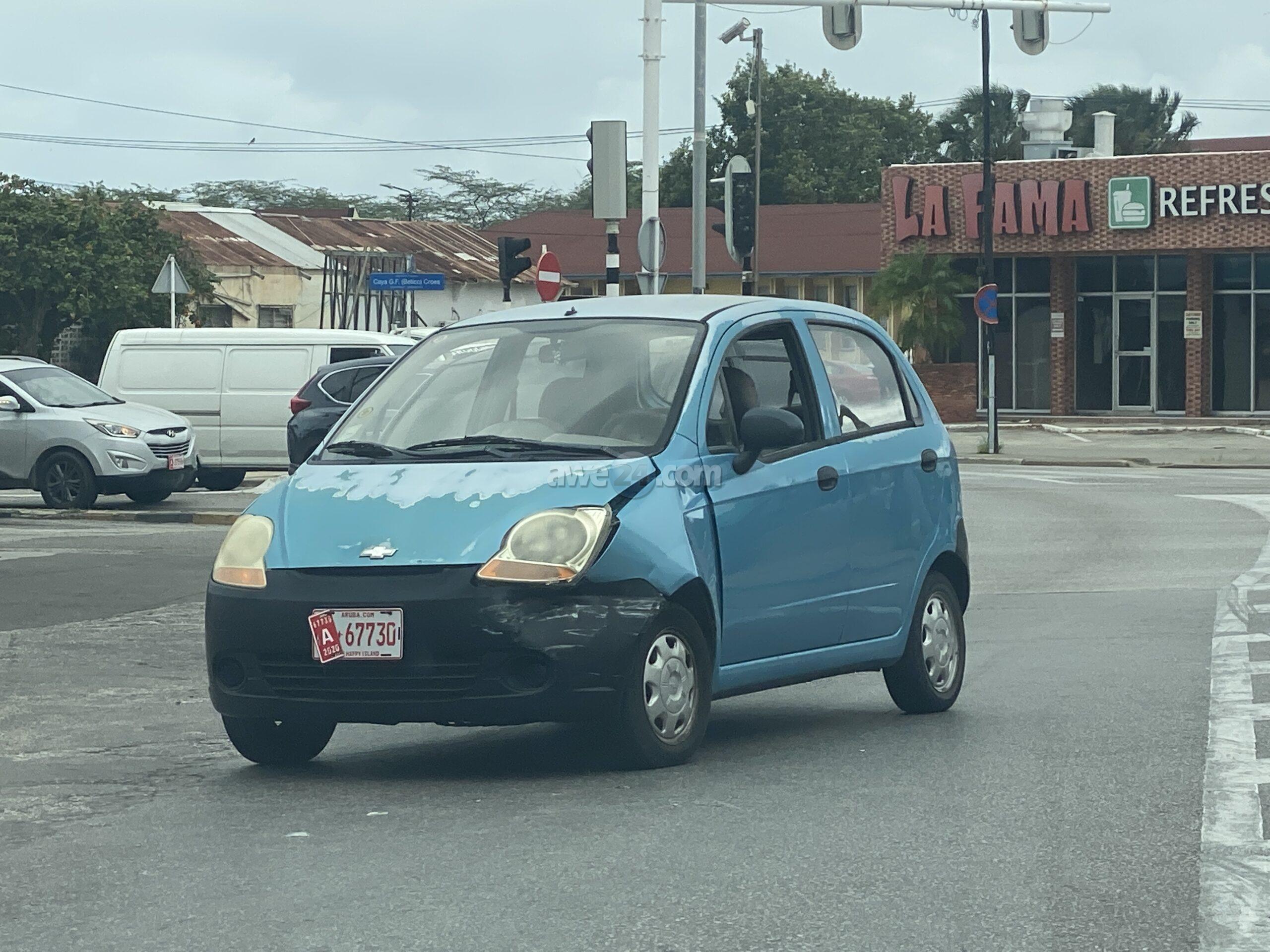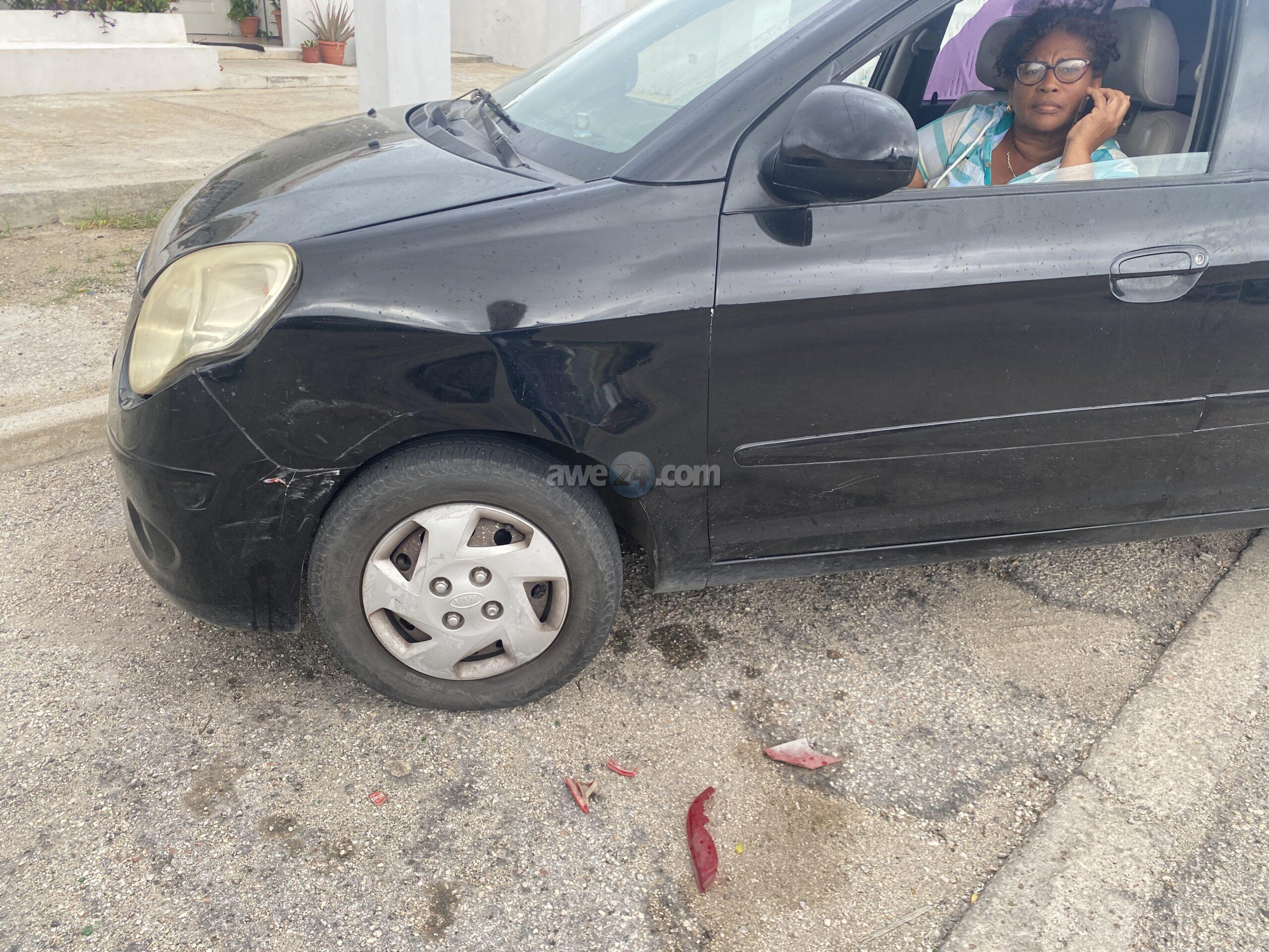 Diaranzon mainta a sosode 4 accidente casi na e mesun momento. E prome tabata un accidente pa falta di preferencia banda di Elmar na Oranjestad, mesora na e momentonan ey a sosode un otro poco mas panort dilanti Peanuts ora cu un Nissan biniendo for di zuid a bira na man robes pa bay na Citgo Caya Grandi pero net tabata bini un trafico contrario y a dal den dje. Na e momentonan ey mes tambe un dama cu tabata pasando rijbewijs a accidenta cu e auto di pasa rijbewijs poco pabao mes di e warda di rijbewijs na Santa Cruz. E dama chauffeur a bay bira e birada skerpi cu un velocidad un poco halto a bay dal riba un baranca canto di caminda. Apenas algun minuut despues a drenta informe di un accidente hit & run dilanti E.P.I. den Venusstraat. Aki e dama ta bay drenta un garashi y un auto banda di caminda ta reverse sin wak patras y a bay dal e Kia Picanto drentando e garashi. E dama a pita e hoben chauffeur pero e impacto a sosode e hoben a bisa e dama e ta bay bira rond pero ela huy.
