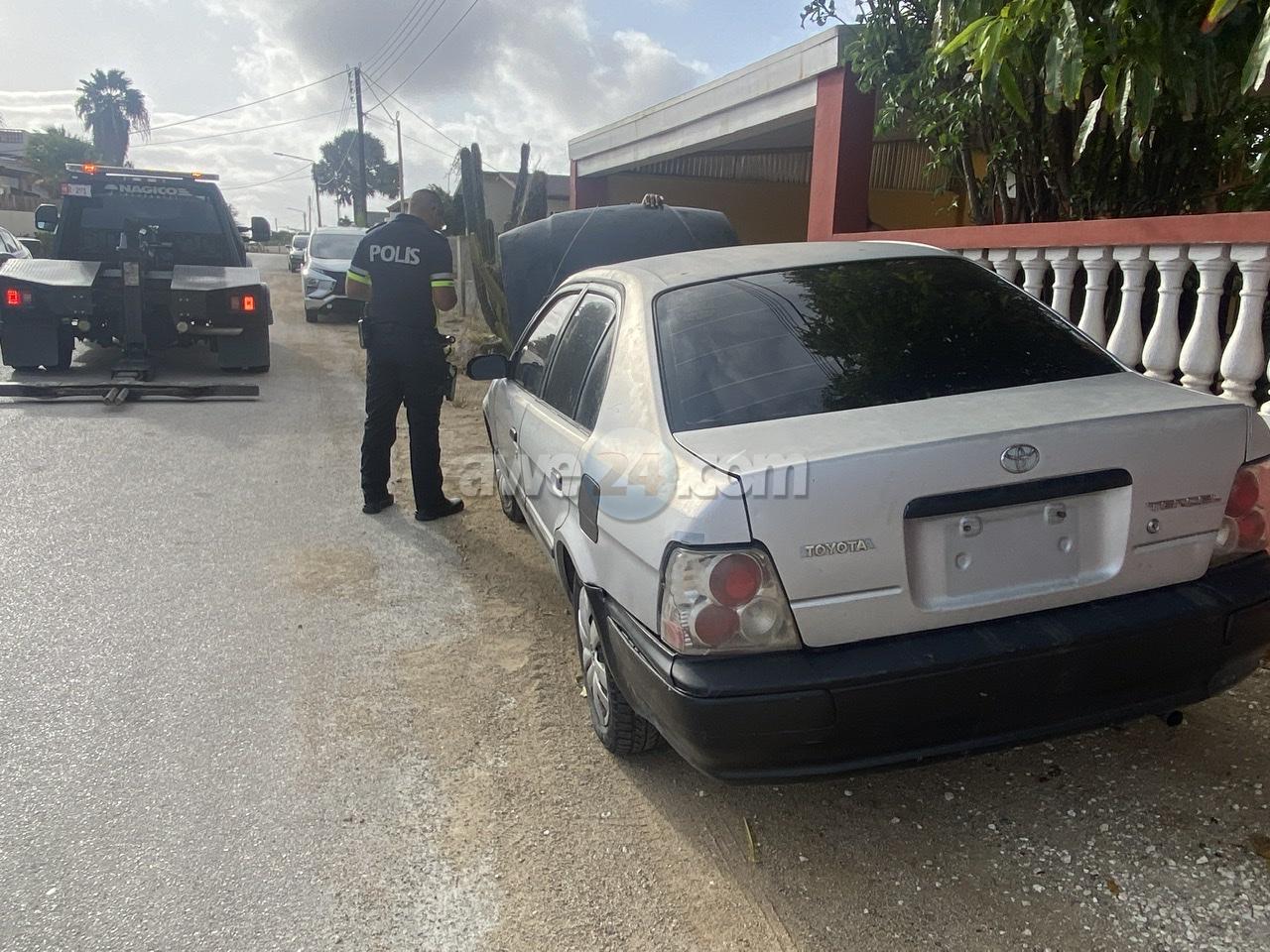 Diahuebs mainta a drenta informe di cu un bisiña bayendo trabao a nota un auto sin number cu un hende sinta aden banda di su cas, mesora a dirigi un patruya na e sitio. Na yegada di e patruya a bin encontra cu un Toyota Tercel sin number y cu un chauffeur sinta aden. Despues di un control a bin descubri cu e papelnan di e auto no ta cuadra y polis a confisca e vehiculo. A solicita un takelwagen pa asina hiba e auto aki na warda di Balashi.