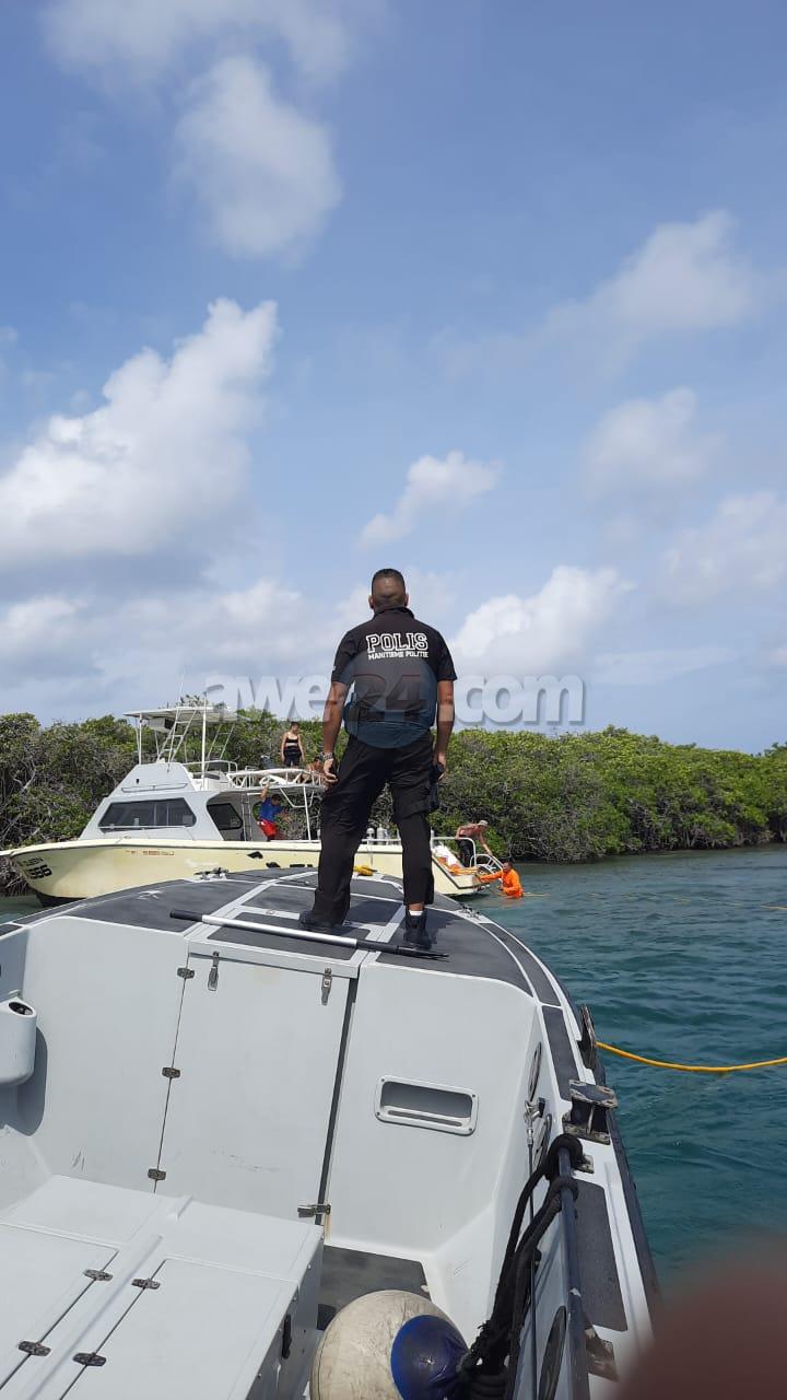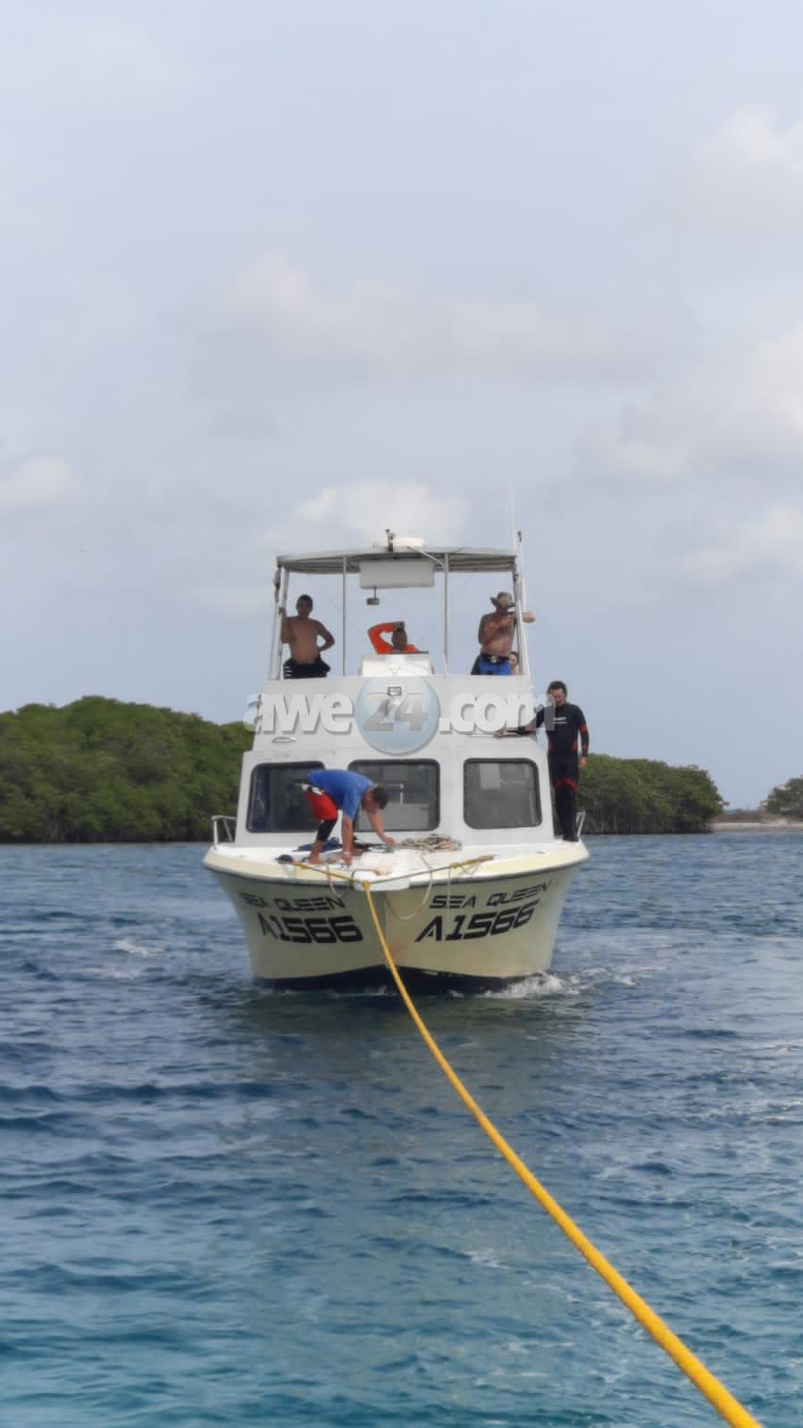 Durante patruya rutinario, polis ta bin encontra cu un boto di buceo yama bou nomber di “Sea Queen” pega den mangrove na altura di renaissance Island. Polis maritimo a dunanan un man y a yuda saca e boto aki. Polis maritimo mes a yuda tow e boto menciona pa un pier na altura di Bucutiweg.