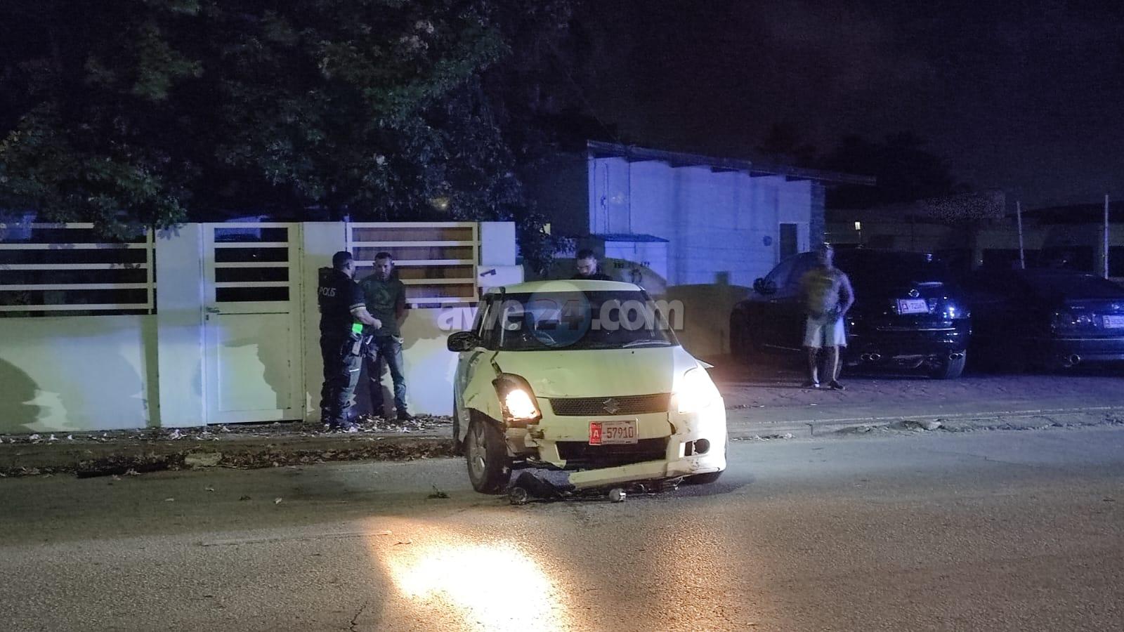 Diadomingo madruga a drenta informe di un accidente na Driemasterstraat., mesora a dirigi un patruya na e sitio. Na yegada di e patruya a bin compronde cu aki ta trata di un accidente unda cu un chauffeur burachi coriendo cu un Suzuki Swift sin documentonan na ordo tabata “zig zag” riba caminda cu velocidad halto bay dal riba un Daihatsu Terios sigui bay subi acera dal riba un cura di zink (zim) bons bay te otro banda di caminda. Afortunadamente ningun hende a resulta herida. Polis a detene e chauffeur pa ocasiona un accidente estando bao influencia y a confisca e vehiculo cu no tabata tin su documentonan na ordo.
