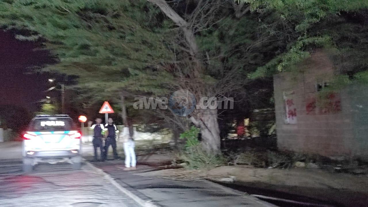 Diaranzon anochi a drenta informe di cu tin un dama cu a sali for di Bo Chang Wing y cu ta canando peligroso banda di caminda y ta kere e lo por ta burachi, mesora a dirigi patruyanan na e sitio. Na prome instante no a logra haya e dama y a bay na e supermercado y eynan a haya sa cu e dama a cumpra un cerbes y a bay. Un rato despues patruya a bin topa cu e dama banda di Tat Fat y a atende cu’ne. E dama a declara cu e ta bayendo pa e busca su homber pero polis a bis’e cu nan por hib’e (mirando cu e ta canando irresponsable riba caminda) e dama a bisa polis cu nan no ta su homber y cu pesey e no ta bay cu nan y ta cu su homber so e ta bay y ta cerca dje mes e ta bay. No a keda polis nada otro cu hala su atencion di su forma irresponsabel di cana riba caminda. Pa tur seguridad polis a sigui vigil’e di leu y a mira cu ela yega sano y salvo na un cas cerca eybanda .