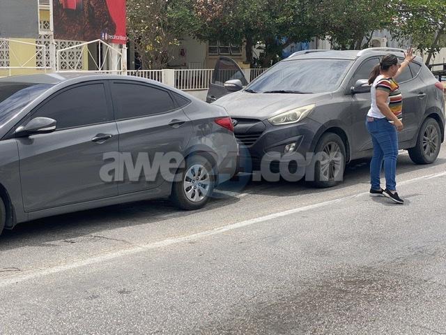 Diahuebs mainta a drenta informe di un accidente na e rotonde Tanki Leendert, mesora a dirigi polis na e sitio. Na yegada di e patruya a bin compronde cu aki ta trata di un accidente unda e chauffeur di Hyundai Tucson no a regula su velocidad ni a mantene distancia a bay dal tras di Hyundai Accent. Afortunadamente ningun hende a resulta herida pero e dama chauffeur di e Accent a sinti un poco dolor na su cabez.
