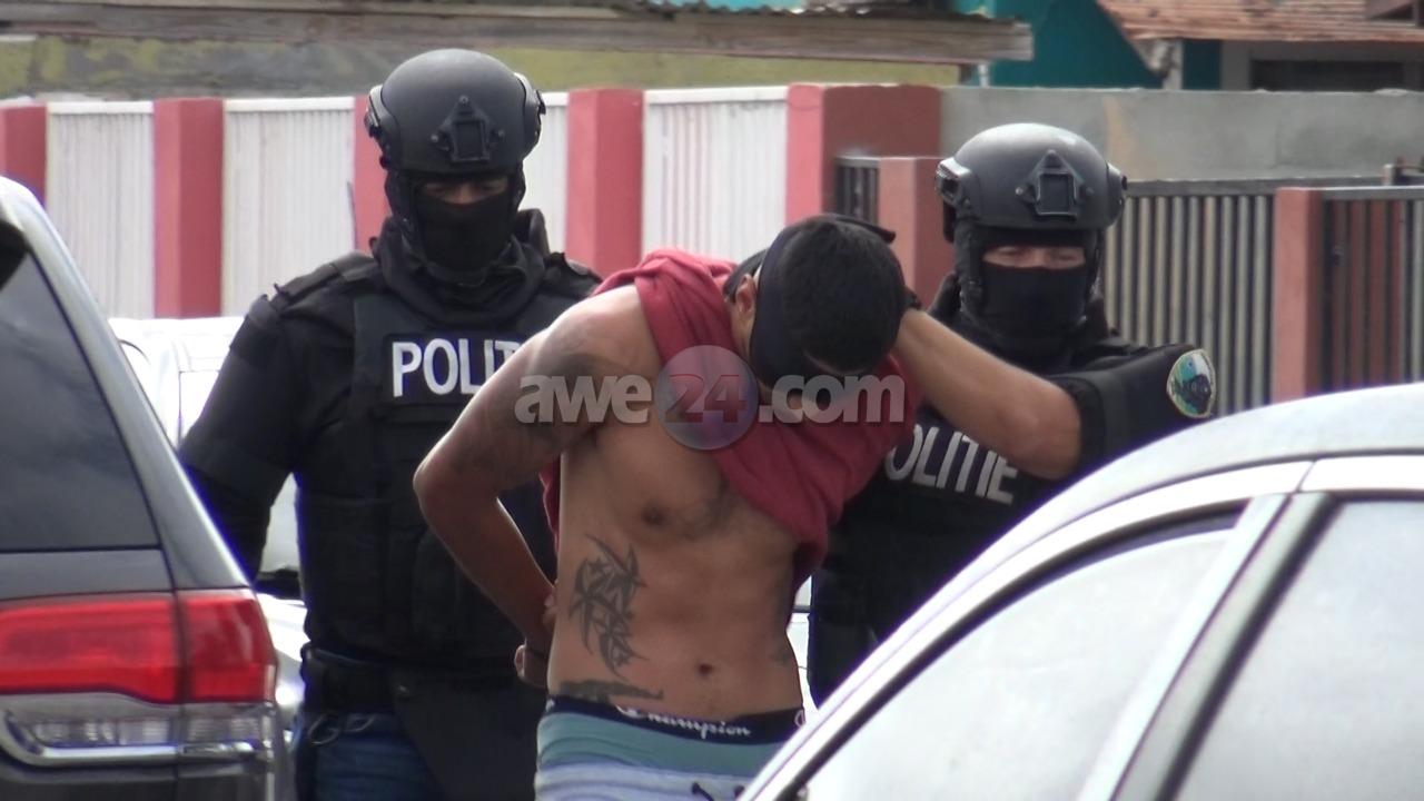 Diahuebs atardi e team di aresto a presenta na un cas den Macubaristraat pa un entrada judicial, mesora nan a yega blokea e caminda y a drenta un cas unda despues a sali cu un sospechoso cara tapa y cu boei na man. Ademas a confisca basta droga. Esaki relaciona cu un caso di violacion di e ley di droga.