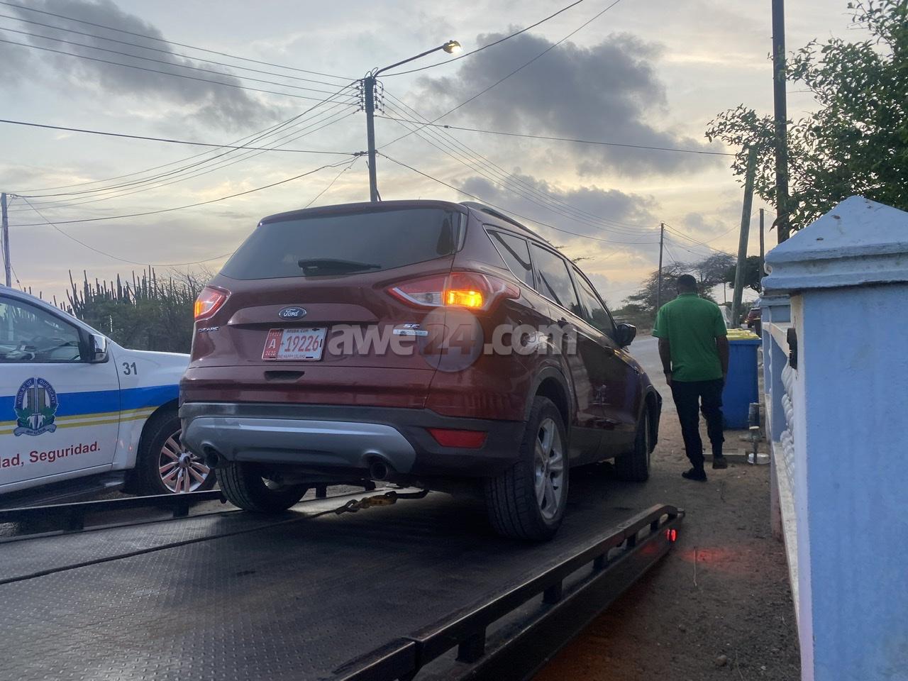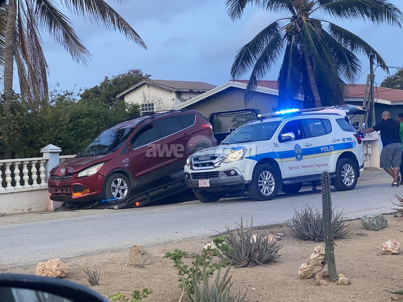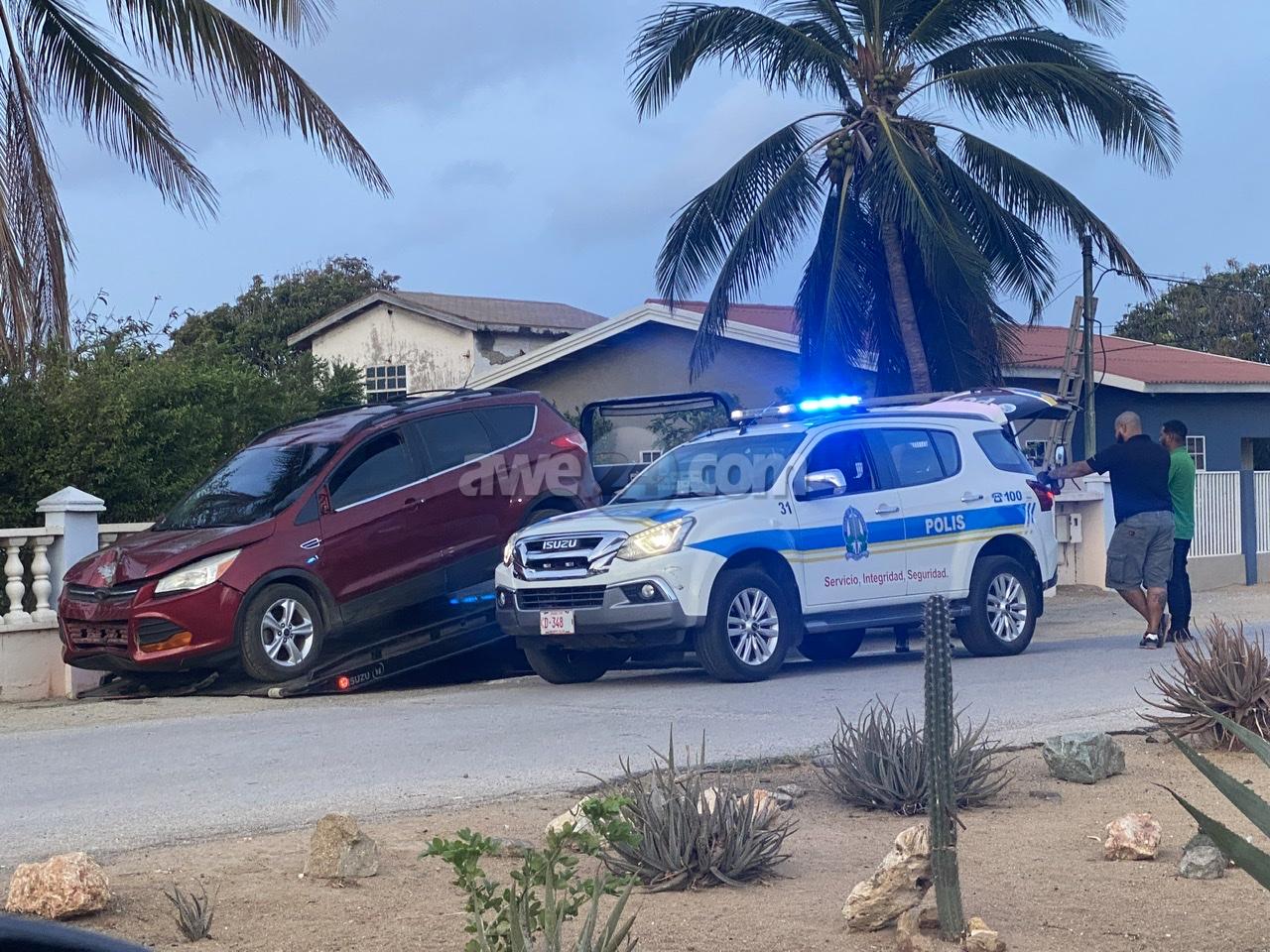 Diadomingo madruga a drenta informe di cu un auto lo a dal un palo di lus y e chauffeur kier core bay for di e sitio, mesora a dirigi un patruya na e sitio. Na yegada di e patruya a bin encontra e palo di lus kibra cu e plachi number A19226 pega na dje, algun cas sin coriente y tambe e spiel di un auto color “burgundi”. Ademas a nota marca di lekmento di azeta bayendo direccion pariba, siguiendo e marcanan aki a logra bin topa cu e auto cu a ocasiona e accidente aki y a confisca esaki. Takelwagen a presenta y a transporte pa warda di polis na Balashi.