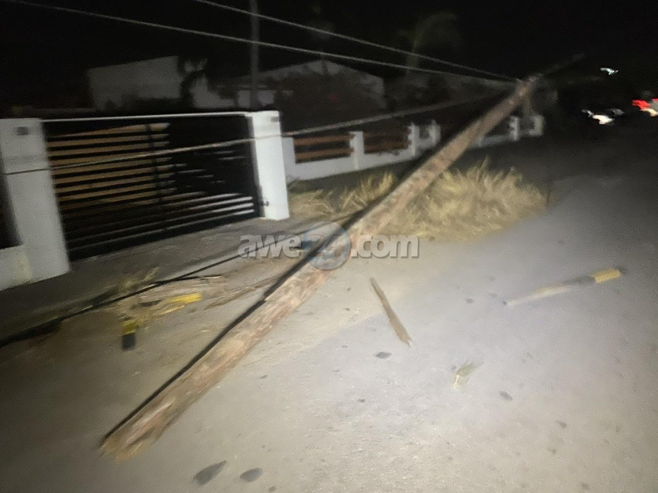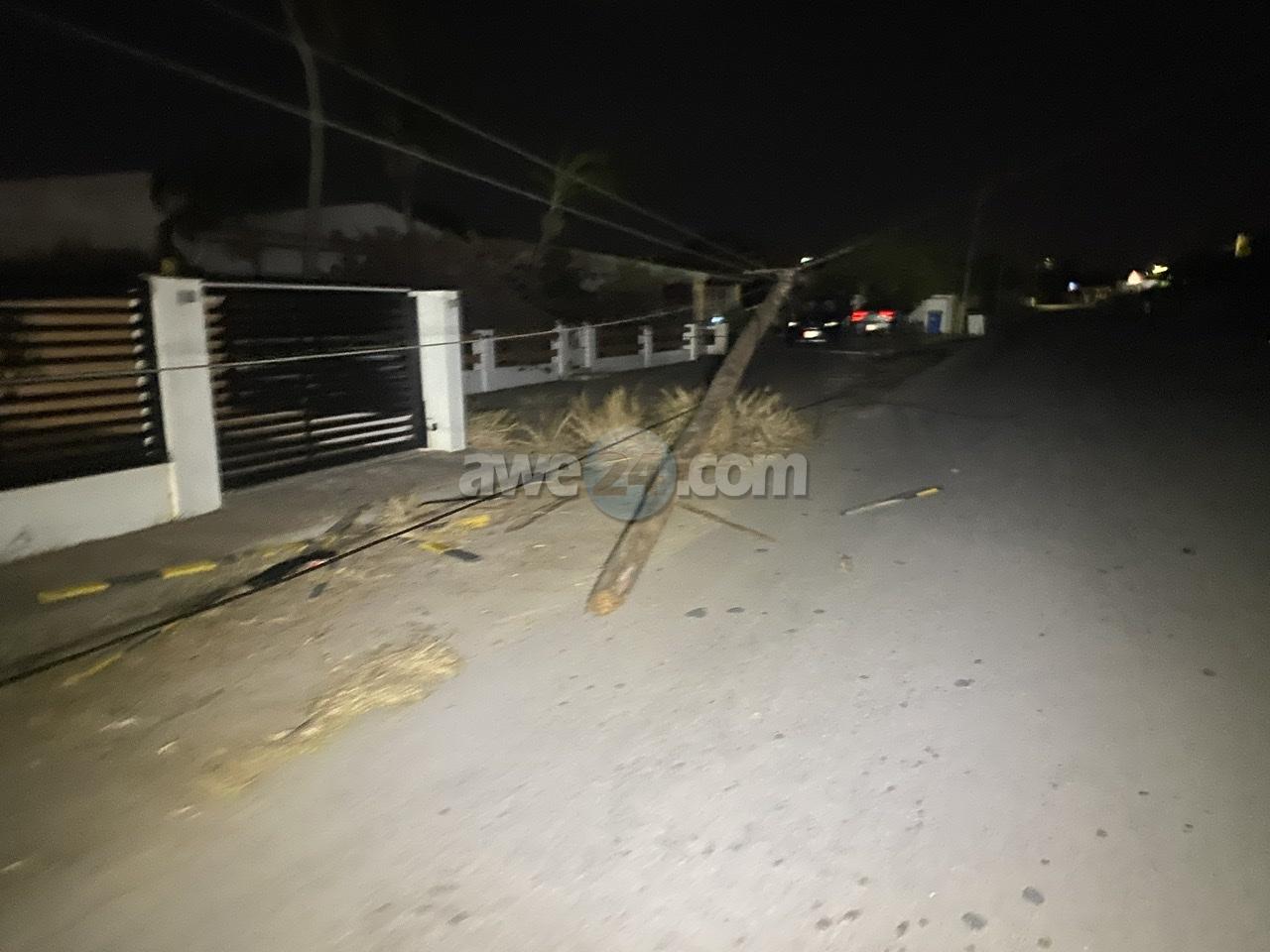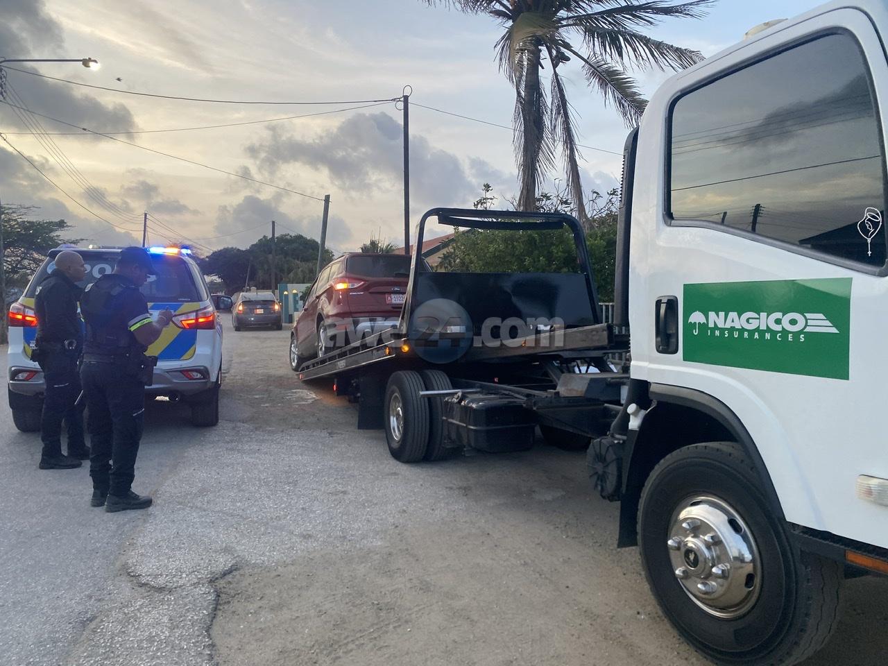 Diadomingo madruga a drenta informe di cu un auto lo a dal un palo di lus y e chauffeur kier core bay for di e sitio, mesora a dirigi un patruya na e sitio. Na yegada di e patruya a bin encontra e palo di lus kibra cu e plachi number A19226 pega na dje, algun cas sin coriente y tambe e spiel di un auto color “burgundi”. Ademas a nota marca di lekmento di azeta bayendo direccion pariba, siguiendo e marcanan aki a logra bin topa cu e auto cu a ocasiona e accidente aki y a confisca esaki. Takelwagen a presenta y a transporte pa warda di polis na Balashi.