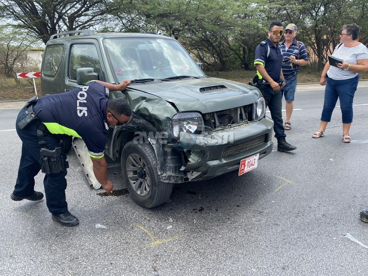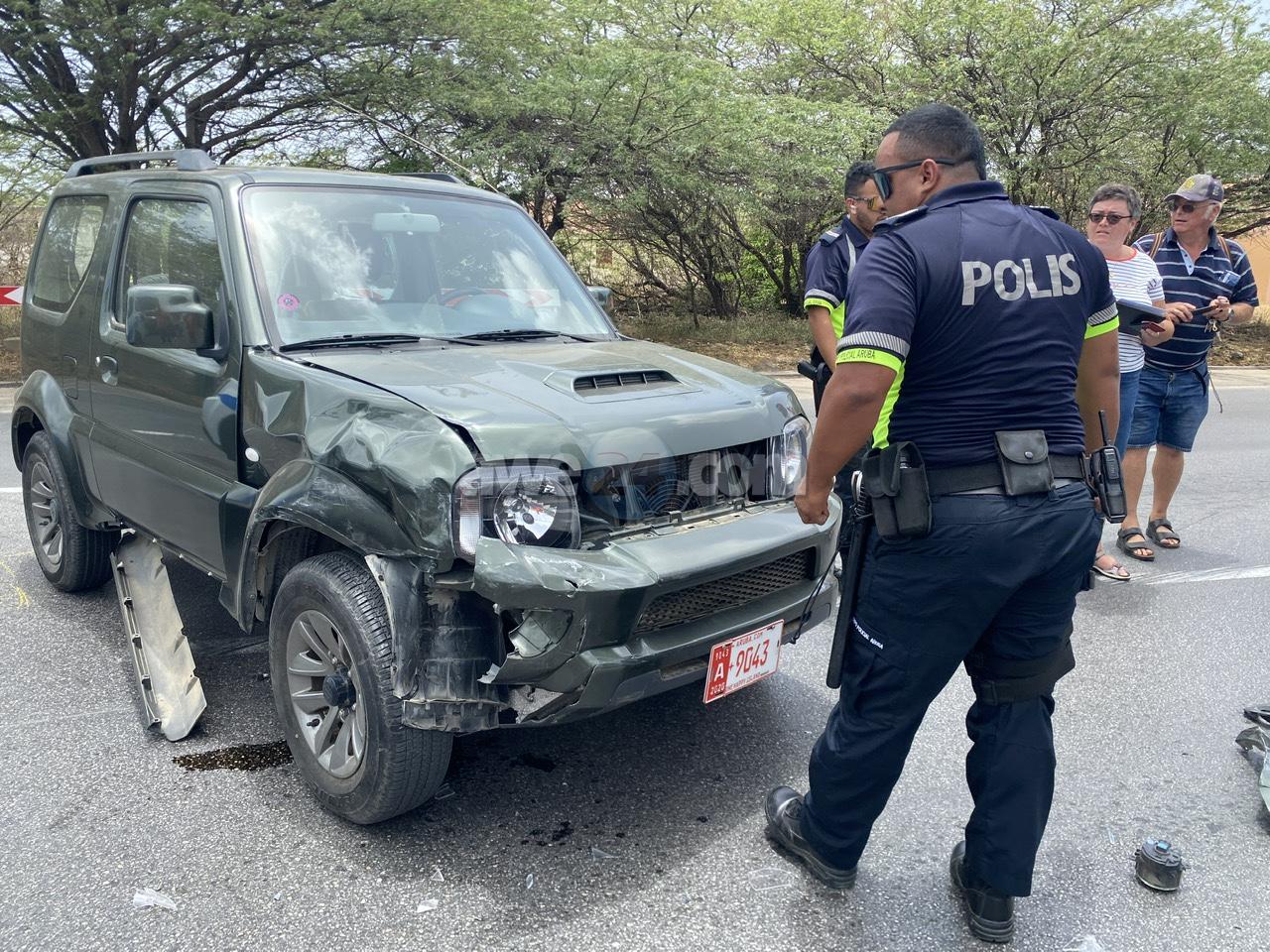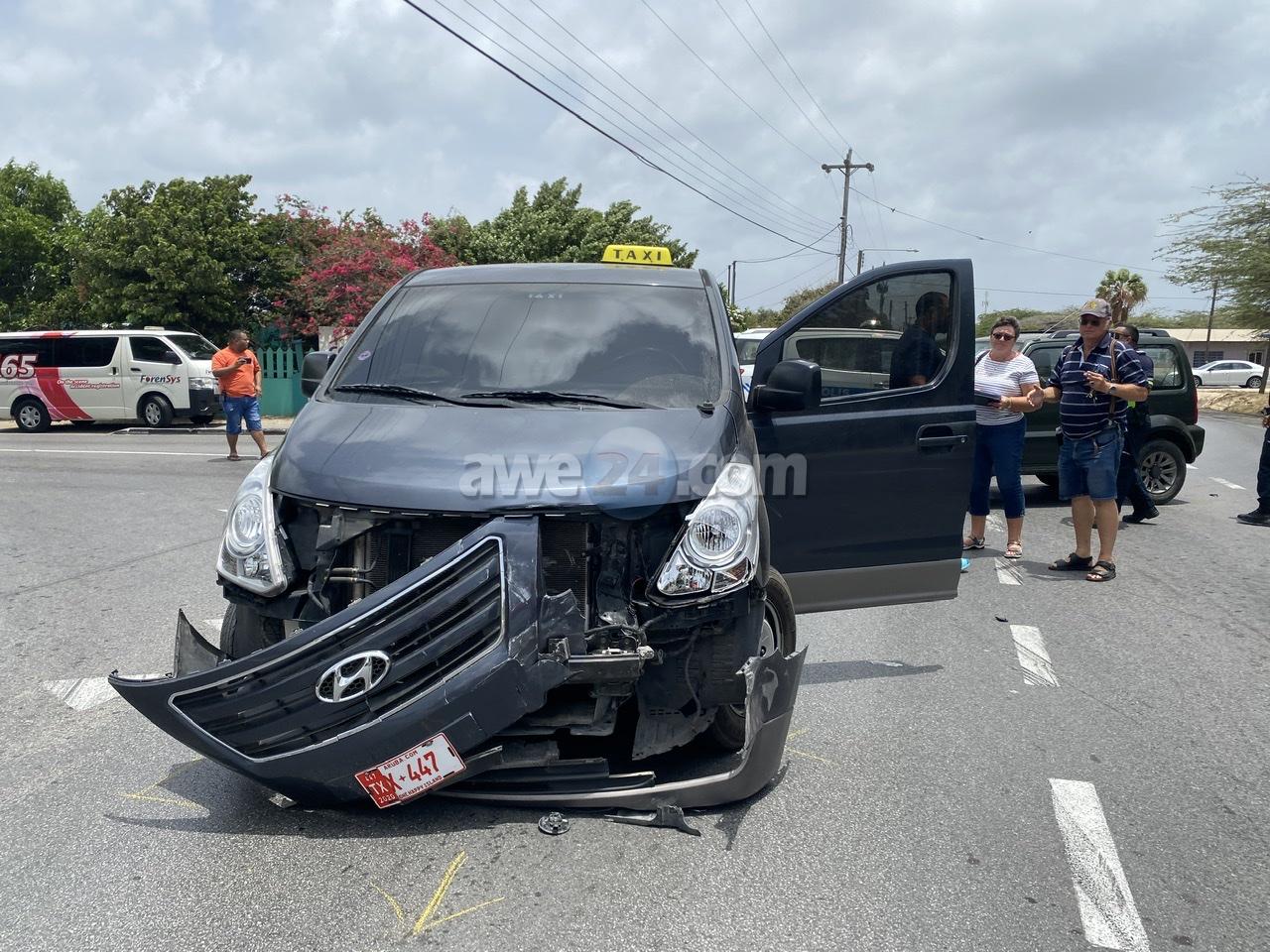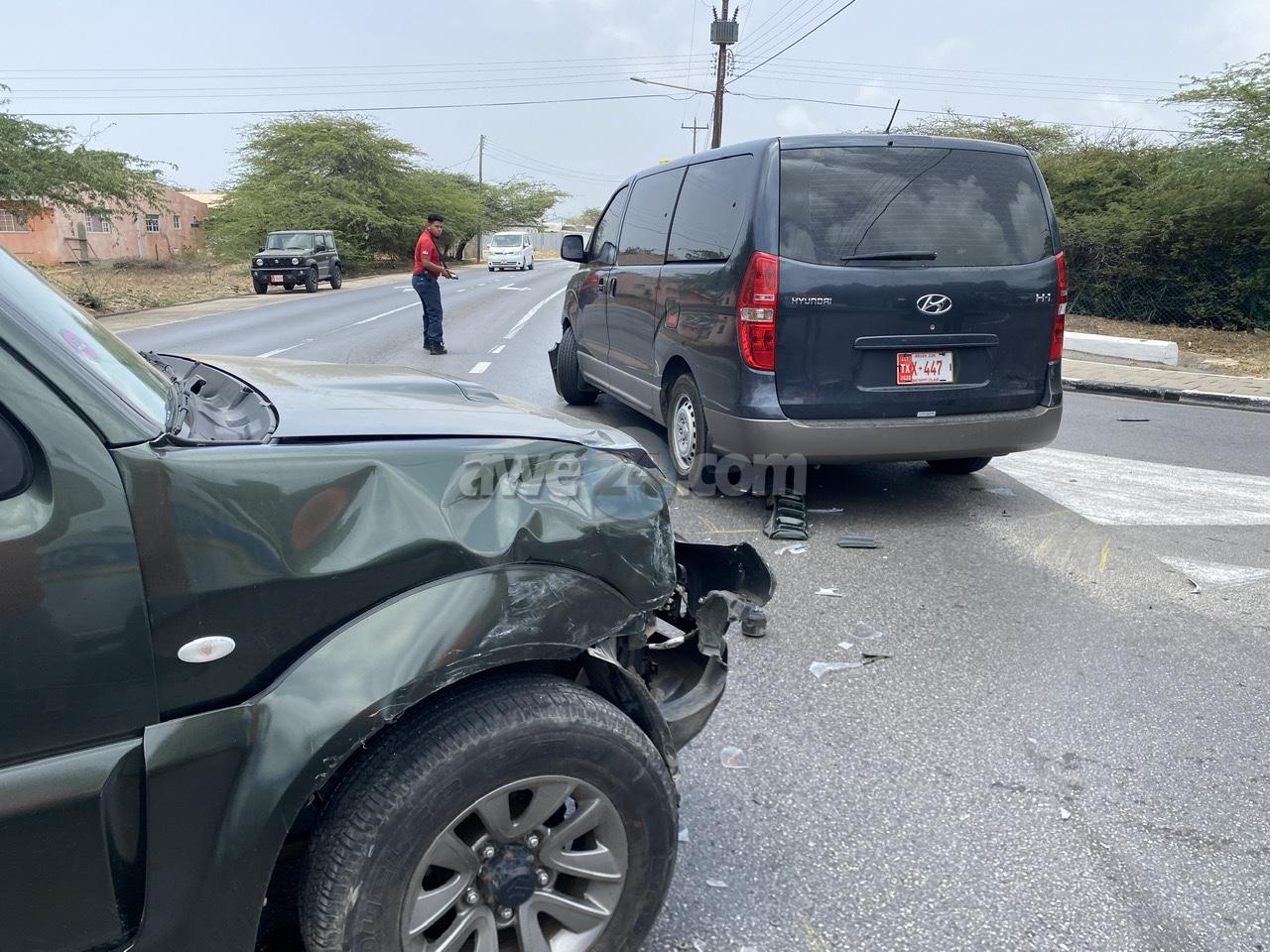 Diahuebs merdia a drenta informe di un accidente na e cruzada di Pos Abao, mesora a dirigi patruya pa e sitio. Na yegada di e patruya a bin compronde cu aki ta trata di un accidente unda cu e taxista di e Hyundai H1 a bay subi e caminda pero no a duna preferencia na e Suzuki Jimny cu tabata bini di pabao y nan a dal basta fuerte pero aforunadamente ningun hende a resulta herida.