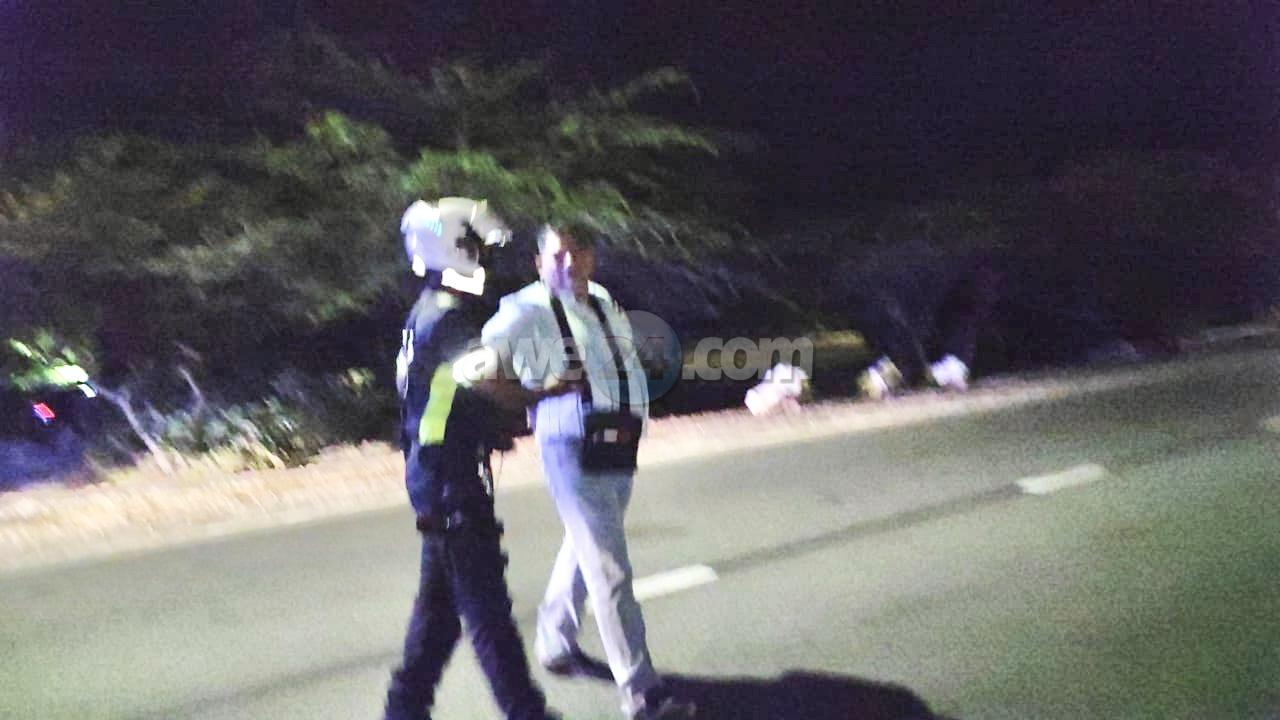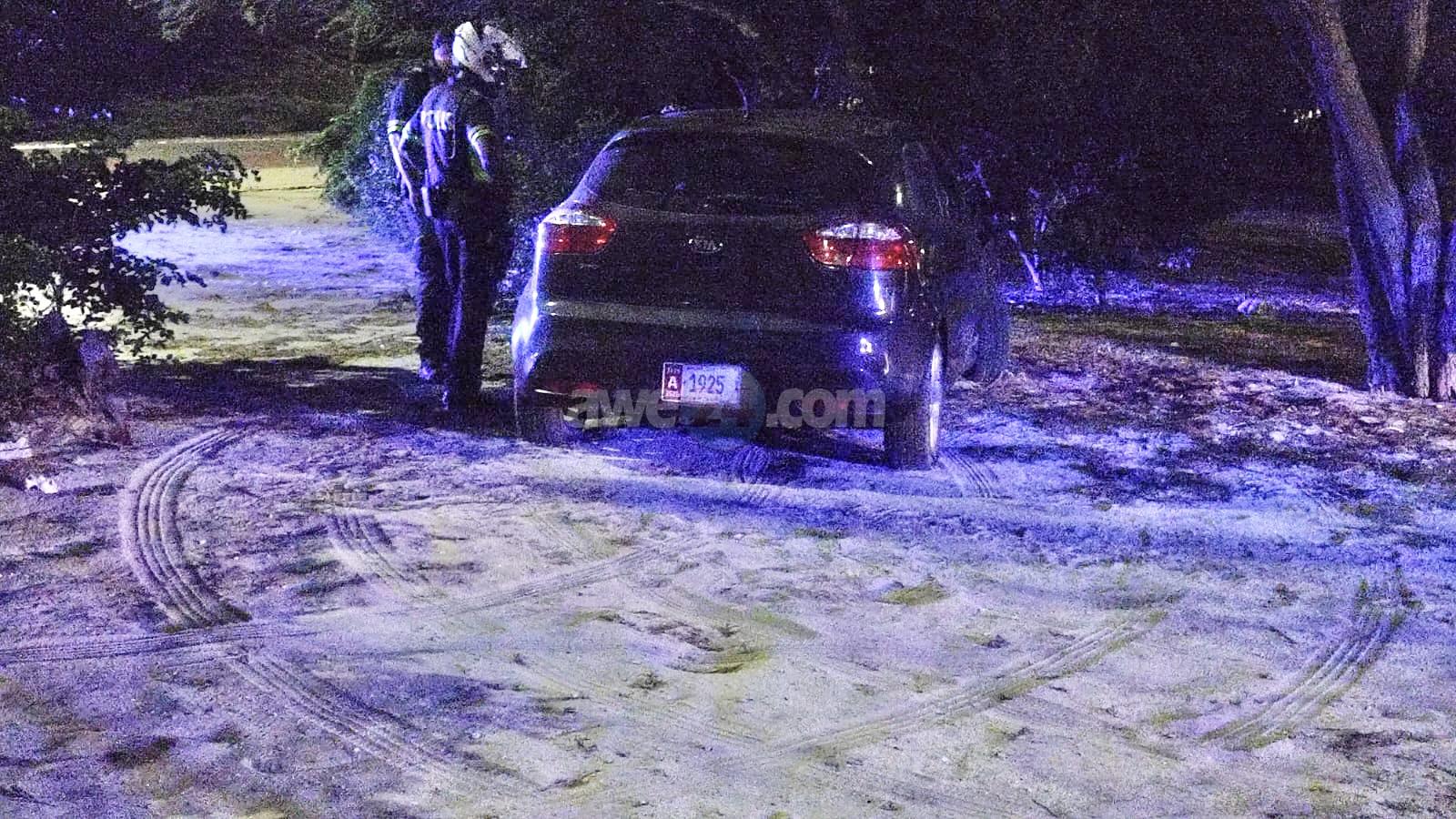 Diasabra madruga a drenta informe di cu tin un auto hinca te den mondi paden aya banda di Azure, mesora a dirigi un patruya na e sitio. Na yegada di e patruya a bin encontra cu un auto y den dje un chauffeur pata pata burachi. Polis a keda babuca cu e chauffeur di e auto a yega te asina leu y no a dal den ningun mata. Polis a detene e chauffeur y a transporte pa warda di polis.