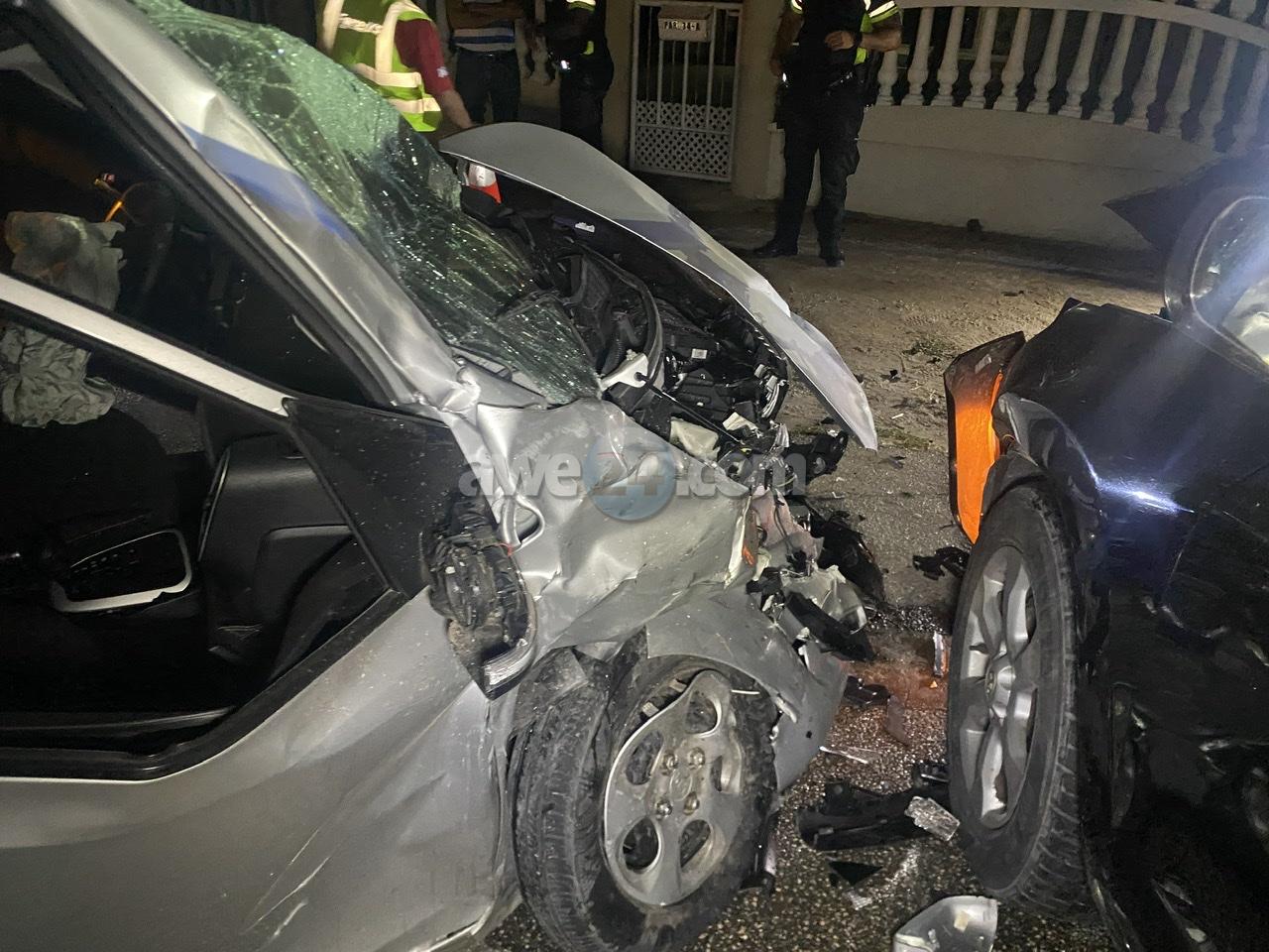 Diasabra madruga a drenta informe di un accidente basta serio dilanti “Anytime” na Paradera, mesora a dirigi tanto polis como ambulans na e sitio. Na yegada di e patruya a bin compronde cu aki ta trata di un accidente frontal unda un Toyota Rav biniedo for di Rooi Afo a subi caminda pa bay zuid sin a duna preferencia na e Kia Picanto biniendo for di Oranjestad y nan a dal frontalmente riba otro e chauffeur di e Kia Picanto tabata keha di hopi dolor mientras e otronan den e Rav a resulta levemente herida. Na yegada di e ambulans nan a atende e victimanan y a transporta e chauffeur di e Kia Picanto pa hospital.