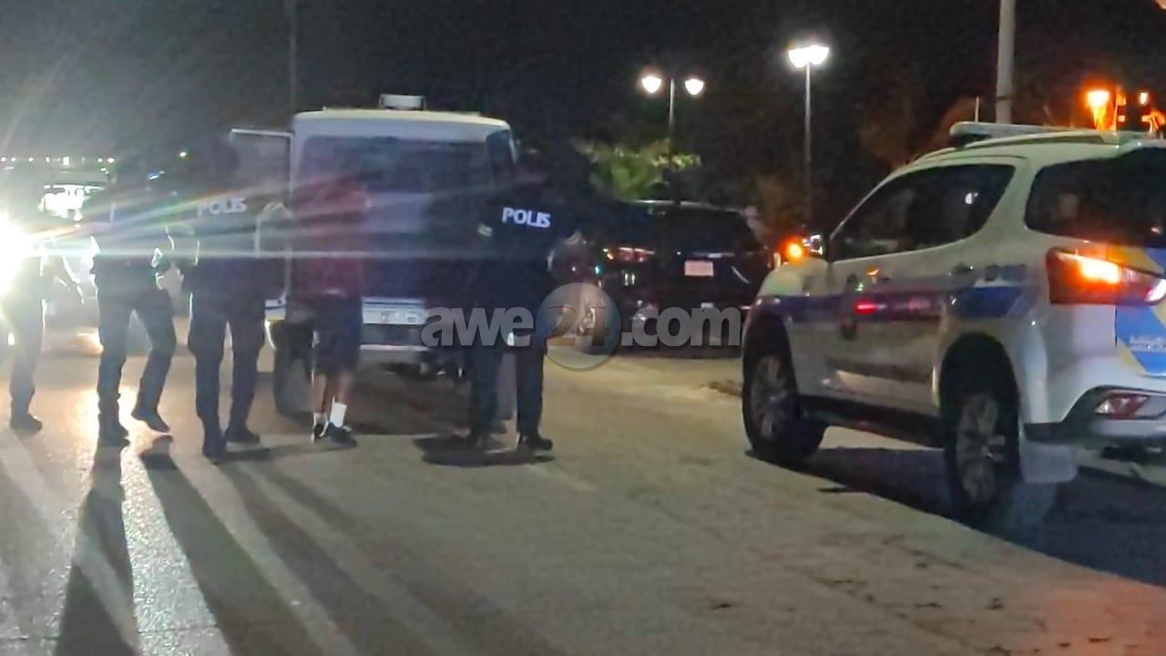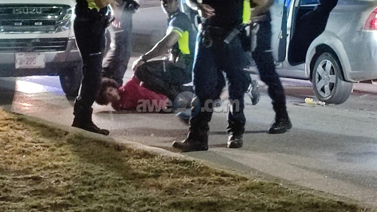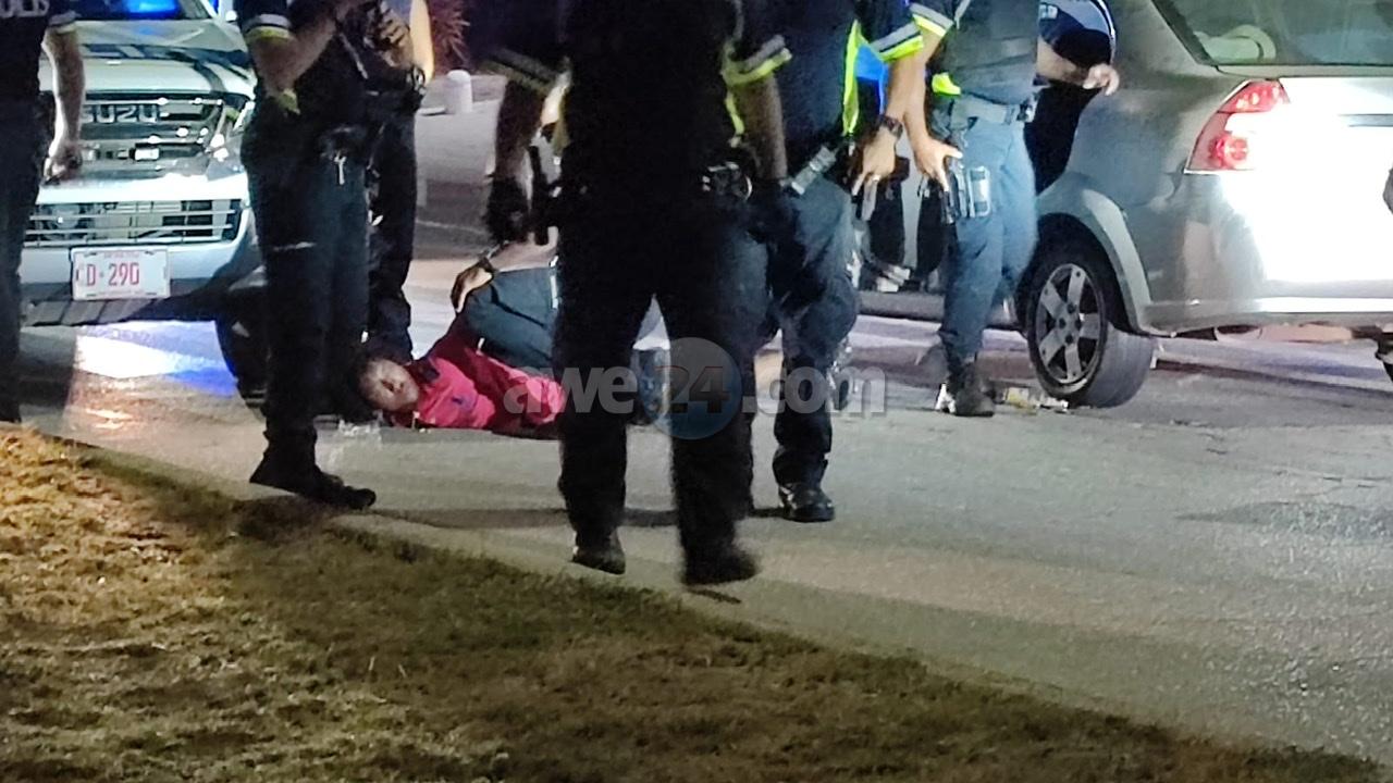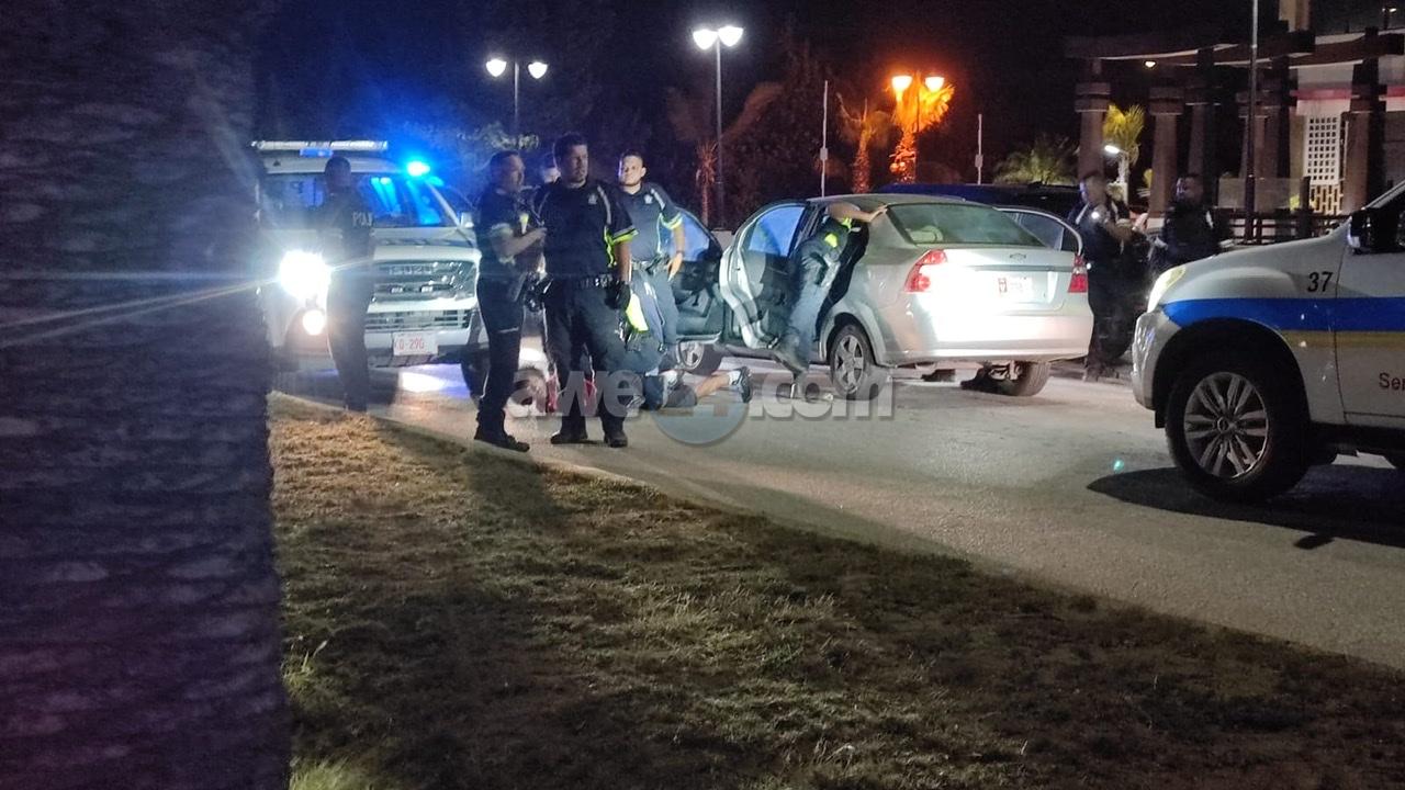 Diasabra madruga a drenta informe di un caso di menasa cu arma banda di e hotzone na e highrise hotelnan, mesora a dirigi patruyanan strategicamente na e sitio. Cu tactica polisnan a presenta riba e sospechoso bisti cu flanel cora y short shinishi den un Chevrolet Aveo shinishi y a mande plat abao y a coba den su manpurse preto y a bin descubri un arma blanco y a detene mesora.
