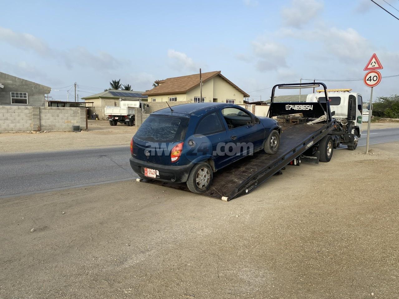 Diasabra atardi a drenta informe di un accidente unda cu un chauffeur a dal un auto y a palabra cu nan lo regla e asunto entre nan mes, diripiente a agredi e persona di e otro auto y a bay cu su auto. Polis na e sitio papiando cu e victima a bin compronde cu e no kier entrega keho di agresion ni joyride contra e otro partido. Pero si kier pa busca su auto. Polis a splica e victima cu si e no entrega keho y e mes lo regla e asunto entre nan polis lo no busca su auto. Un otro patruya a topa cu e auto concerni y a par’e, a bin resulta cu e auto no tin ningun documento na ordo, mesora polis a confisca e auto y a pidi takelwagen a baha esnan den e auto y takelwagen a bay cu esaki pasobra no tabata tin su papelnan na ordo.