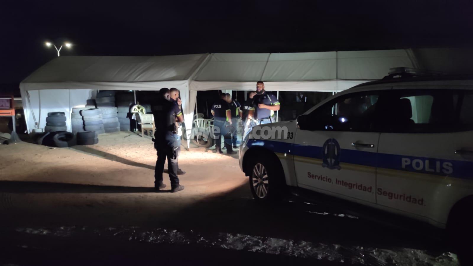 Diasabra anochi a drenta informe di cu tin musica duro na e Tire Shop banda di e gayero na Bushiri, mesora a dirigi un patruya na e sitio. Na yegada di e patruya nan a atende cu esnan concerni pa baha e musica. E hendenan no tabata mucho contento pero toch nan a baha e musica ademas polis a adverti nan si nan mester bolbe nan lo bay cu e equipo di sonido completo. Na momento cu polis tabata bayendo desconosidonan a manda un boter riba e patruya. Mesora a pidi pa refuerso y varios patruya a responde, polis a para e fiesta y core cu tur hende for di e sitio. Despues cu cos a caba nan a sigui nan patruya.