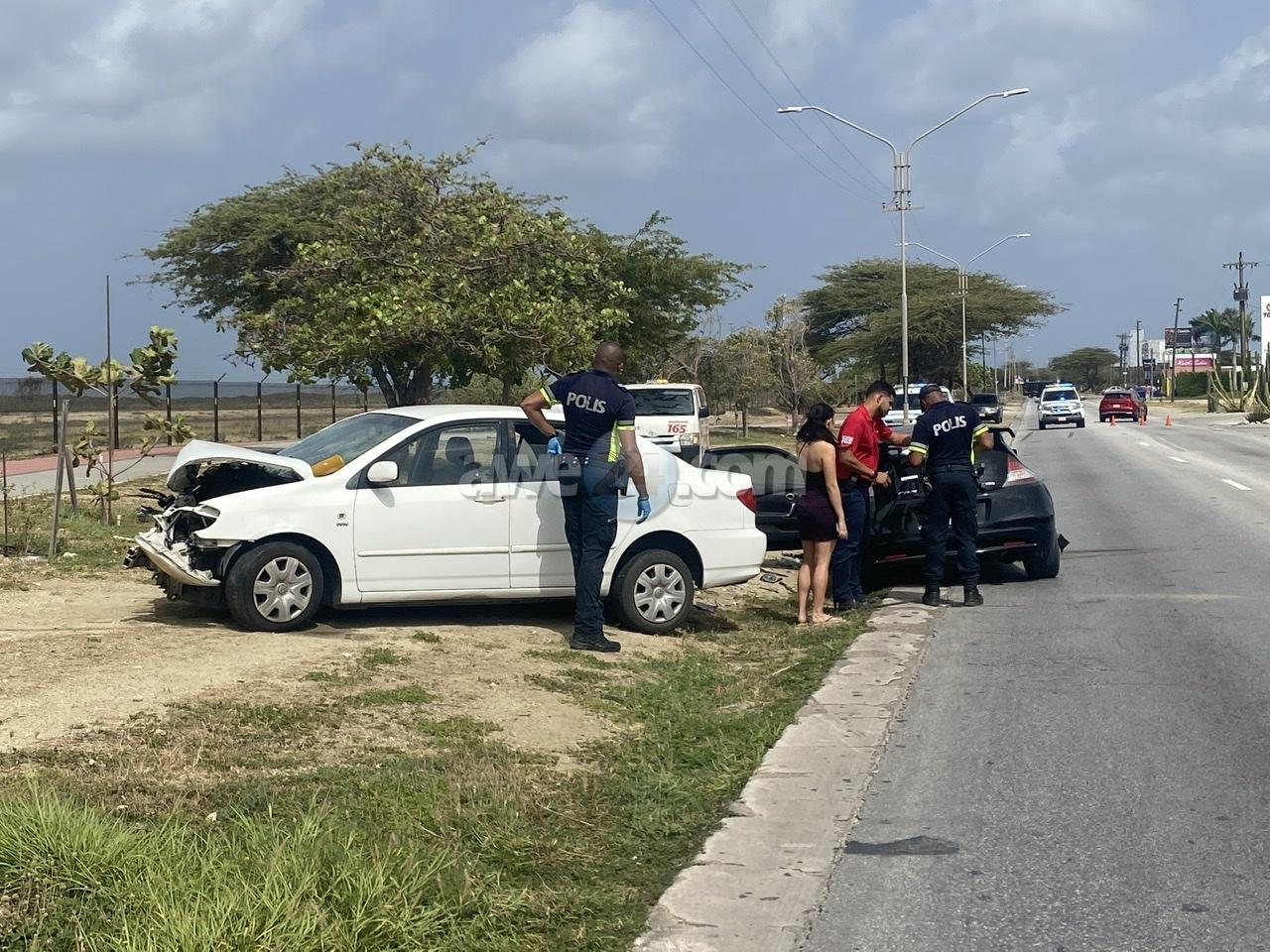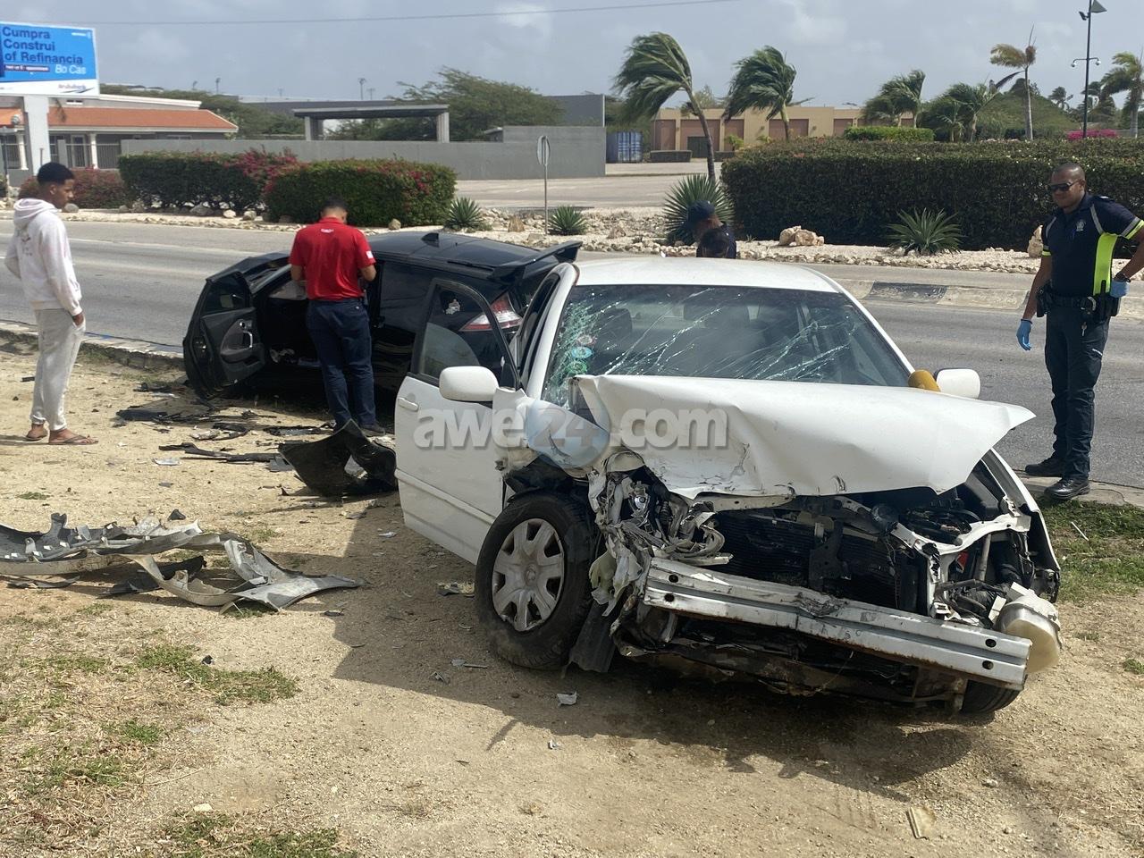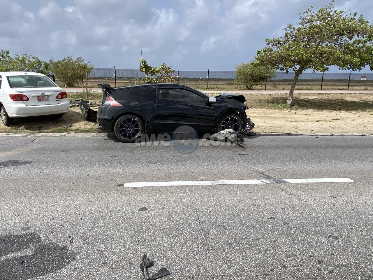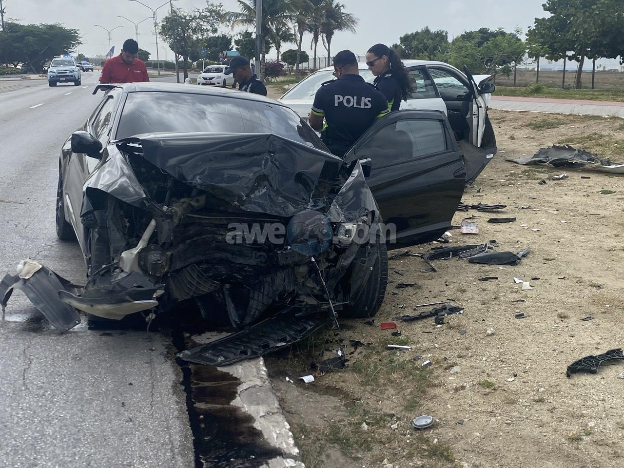 Diadomingo mainta a drenta informe di un accidente cu hende herida na Camacuri, mesora a dirigi tanto polis como ambulans na e sitio. Na yegada di e patruya a bin compronde cu aki ta trata di un accidente unda cu e dama chauffeur di e Honda CRZ bayendo direccion pariba a bira malo tras di stuur y a bay na e banda robez di caminda y a bay dal frontal riba e Toyota Corolla di direccion contrario. E impacto tabata fuerte y ambos chauffeur a resulta herida. Na yegada di e ambulansnan nan a atende e victimanan y a transporta nan pa hospital. Ambos auto a keda “total-loss”.
