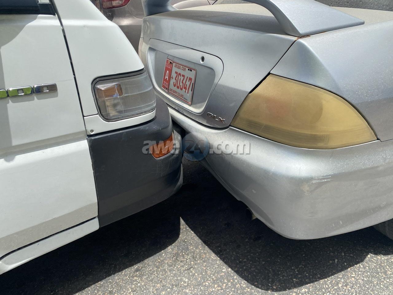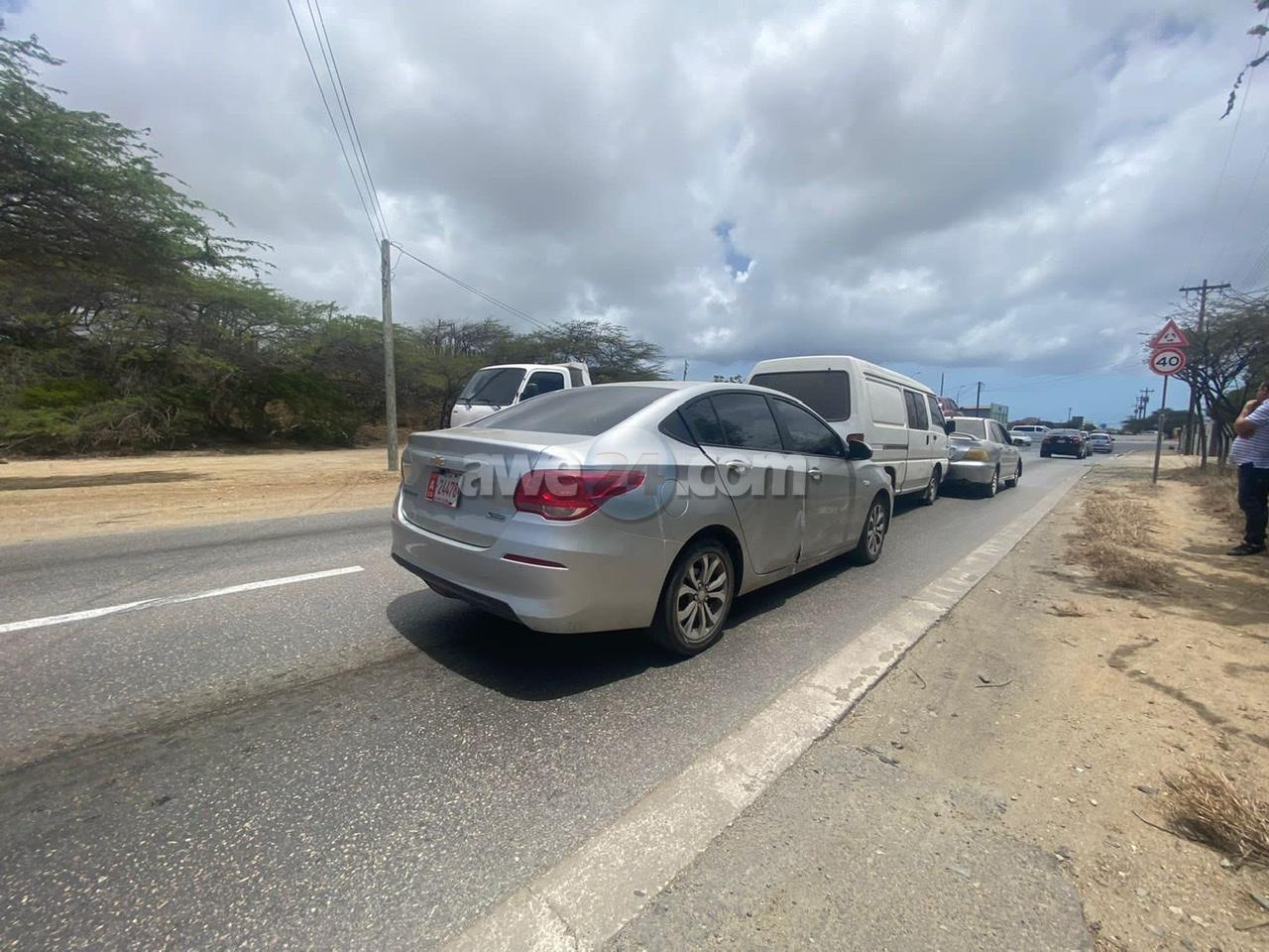 Diamars merdia a drenta informe di un accidente panort di e rotonde banda di Acero na Tanki leendert, mesora a dirigi un patruya na e sitio. Na yegada di e patruya a bin compronde cu aki ta trata di un accidente di cadena cu 3 auto envolvi. E chauffeur di e Chevrolet Cavalier biniendo zuid no a regula su velocidad ni a mantene distancia a bay dal tras di un van y pusha esaki dal tras di un Mitsubishi Lancer. Afortunadamente ningun hende a resulta herida.
