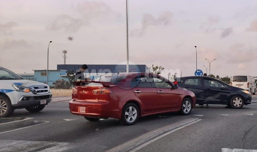 Diaranzon mainta a drenta iinforme di un accidente na e rotonde Cumana riba E.J. “Watty” Vos blvd., mesora a dirigi un patruya na e sitio. Na yegada di e patruya a bin compronde cu aki ta trata di un accidente unda cu un auto a bay subi e rotonde sin a duna preferencia na e auto cu ta riba e rotonde. Afortunadamente ningun hende a resulta herida.