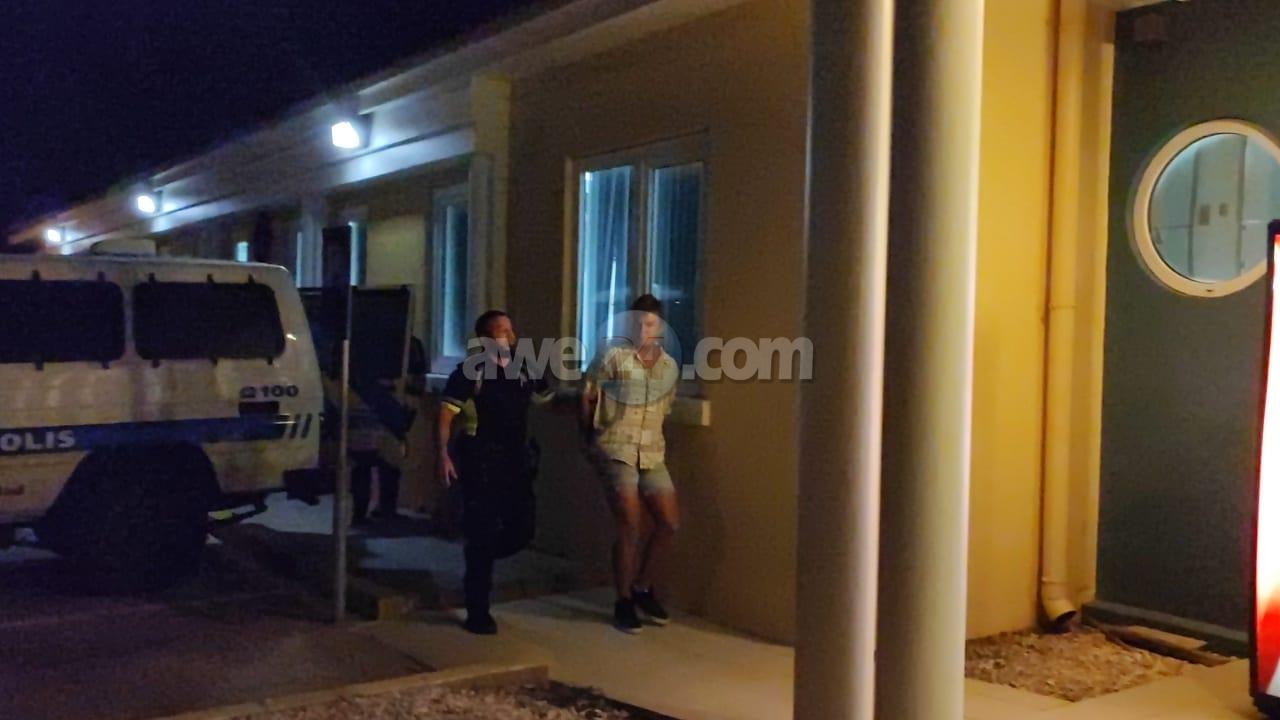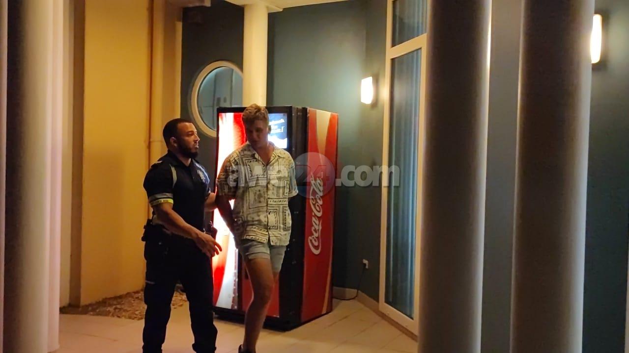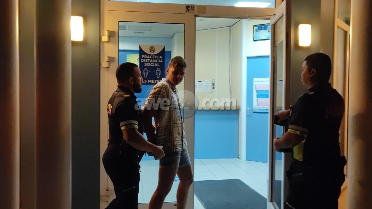 Diasabra madruga polisnan atento patruyando den e hotzone banda di e highrise hotelnan a nota un homber burachi haciendo fastioso den e area mesora polis a acerke y a detene. A pidi presencia di e vehiculo di transporte pa asina hib’e warda di polis pa pasa anochi den cel.