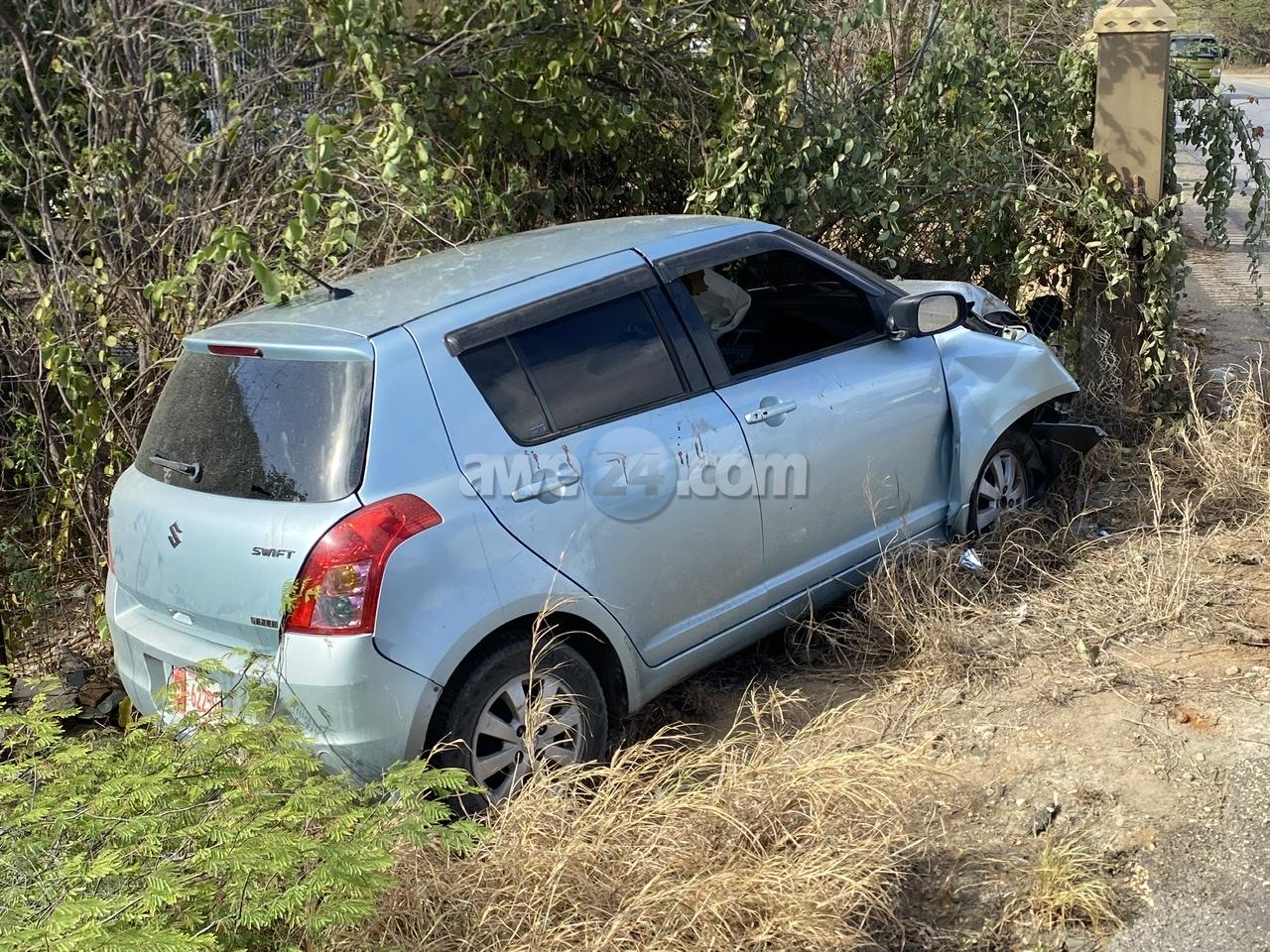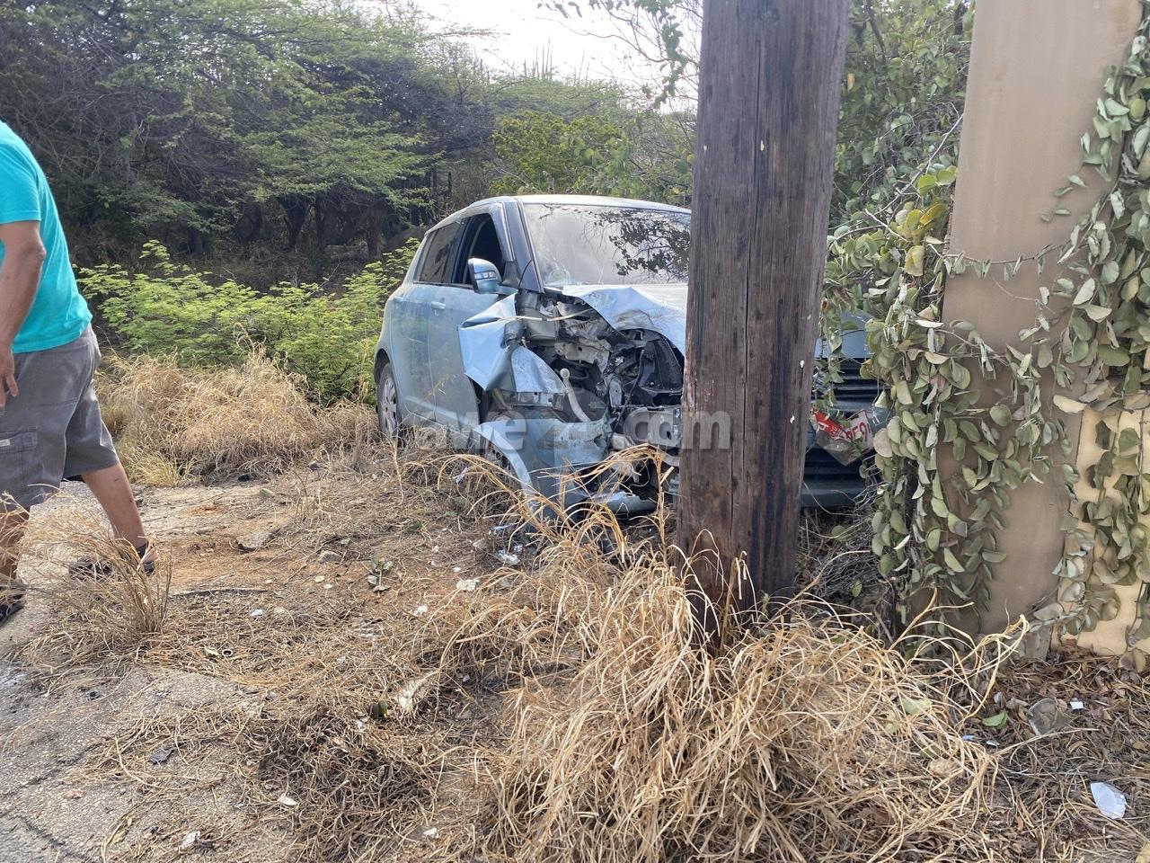 Diadomingo mainta a drenta informe di un accidente na Paradera, mesora a dirigi un patruya na e sitio. Na yegada di e patruya a bin encontra cu un Suzuki Swift kibra cu lo a dal riba un palo di lus y un cura di cas. Pero e chauffeur mes no tabata den e auto y tanto paden como pafo di e auto tin manchanan di sanger indicando cu e chauffeur lo ta herida. Como cu e chauffeur a laga e auto atras polis a confisca esaki pa mas investigacion.