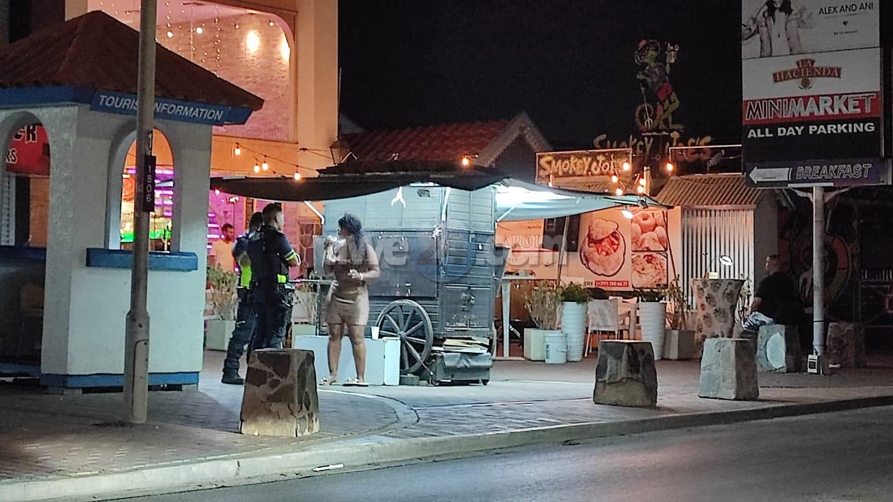 Dialuna madruga a drenta informe di un pelea di pareha turista unda e homber ta agrediendo e muher, mesora a dirigi un patruya na e sitio. Na yegada di e patruya a bin compronde cu aki ta trata di un pelea di pareha turista unda e homber a agredi e muher pero ya caba e homber a bay. E muher si tabata na e sitio y polis a mira su lip herida y e dama no kier entrega keho pero kier regresa hotel. Polis a hiba e dama na Holiday-Inn unda eynan nan a regla un otro camber pa e dama.