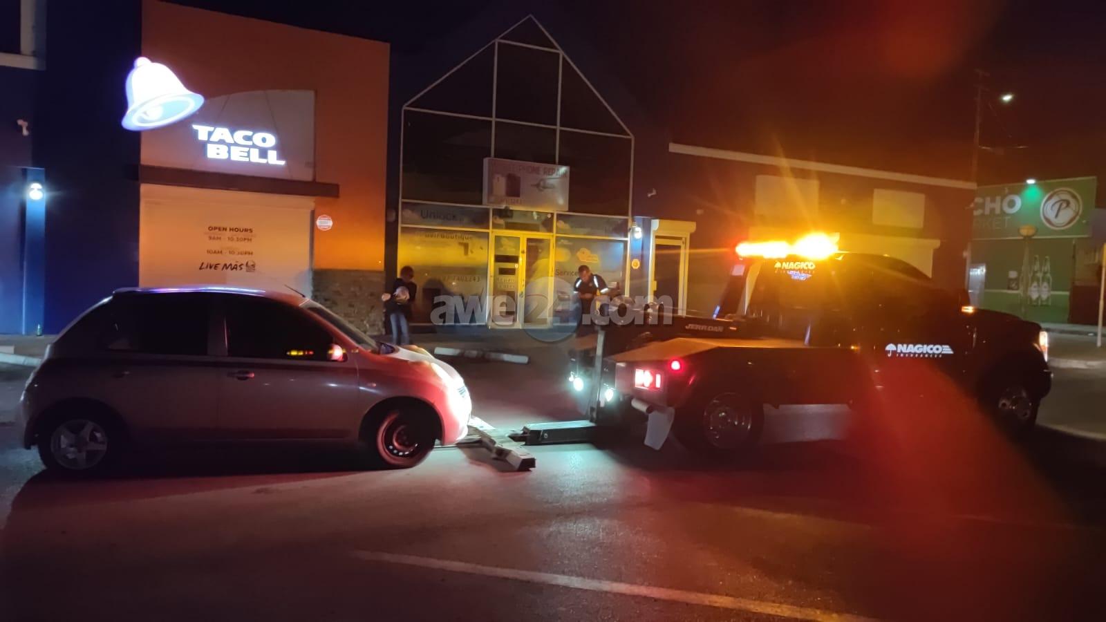 Dialuna madruga durante patruya polisnan atento a topa cu un Nissan March cu su glas kibra y un piedra den e auto. Polis a purba busca pa haya e doño pero no a logra. Pa nada mas pasa cu e auto polis a laga tow e pa hib’e Balashi pa pone na disposicion di su doño.