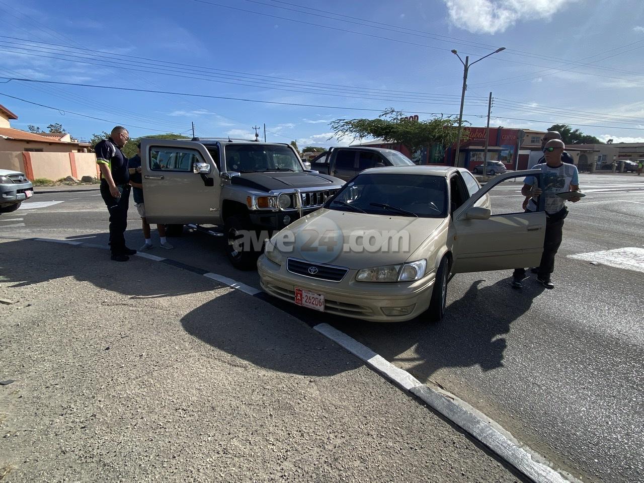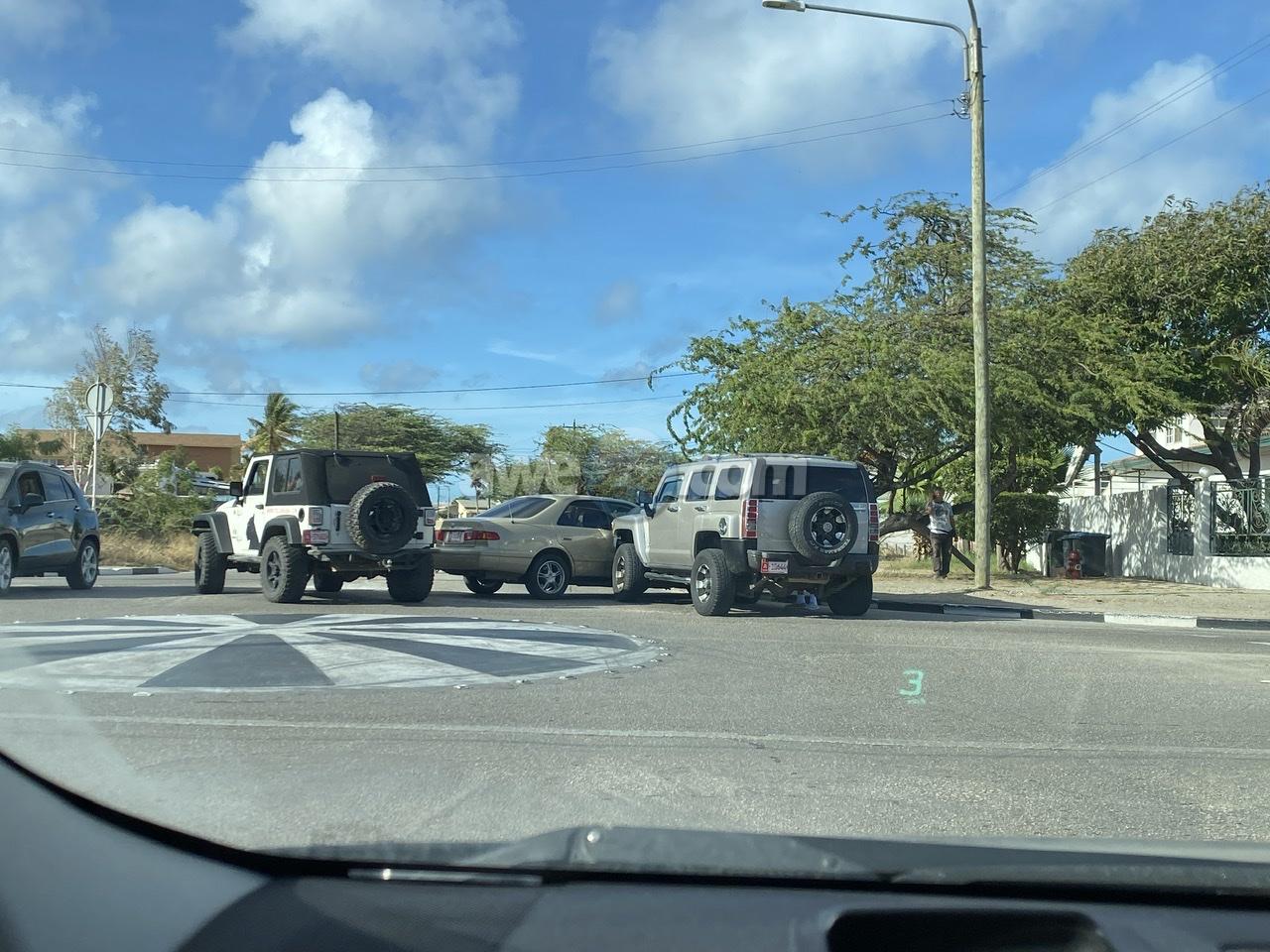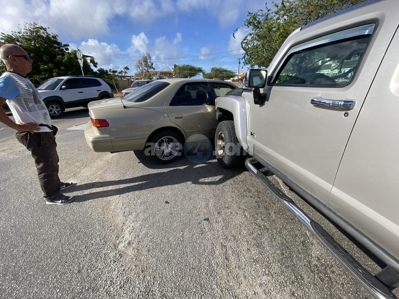 Diamars mainta a drenta informe di un accidente na e rotonde chikito banda di Bubali Enterprises, mesora a dirigi un patruya na e sitio. Na yegada di e patruya a bin compronde cu aki ta trata di un accidente pa falta di preferencia unda e Hummer H3 biniendo di rotonde Bubali no a duna preferencia na e Toyota Camry biniendo for di San Miguel y e Hummer a dal e Camry mande te casi otro banda di caminda. Afortunadamente ningun hende a resulta herida.